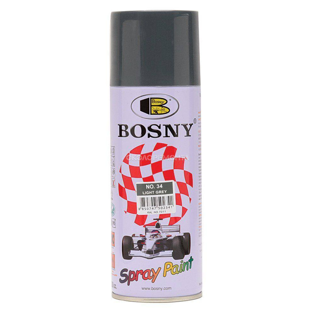 Описание Универсальная акриловая аэрозольная эмаль Bosny светло-серый (34) RAL 7011