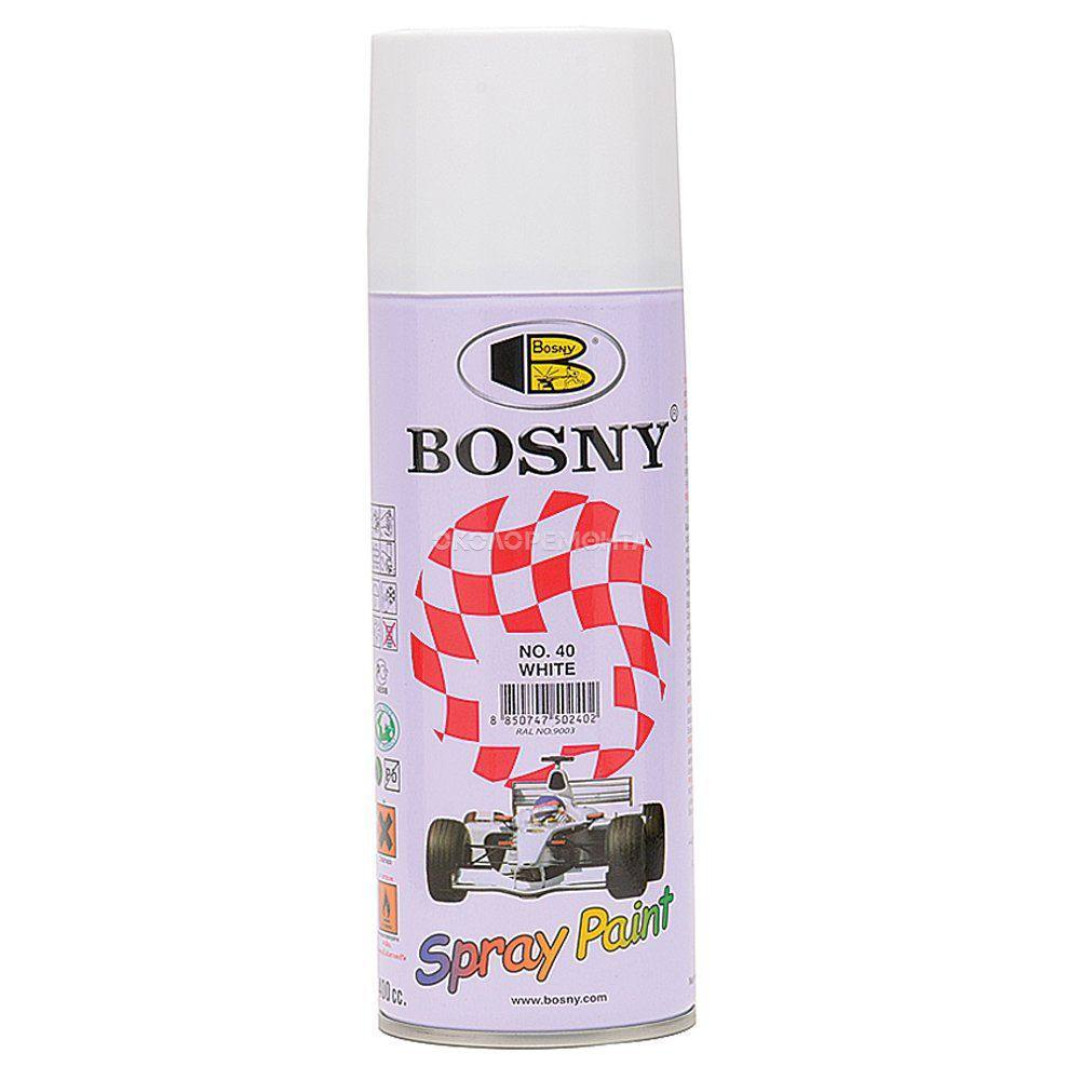 Основные характеристики Универсальная акриловая аэрозольная эмаль Bosny белый (40) RAL 9003