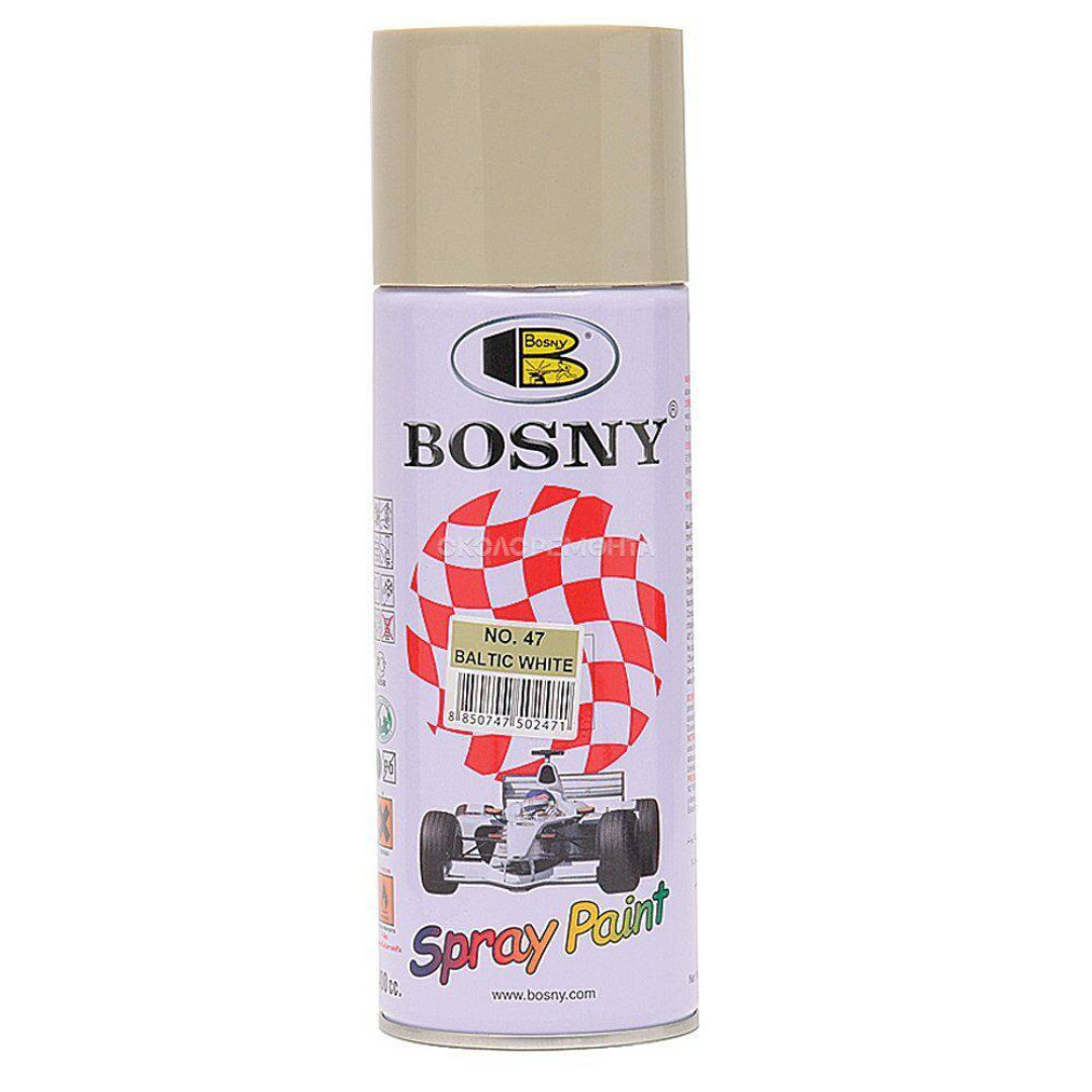 Акриловая спрей-краска BOSNY для покраски металлических, деревянных, керамических поверхностей идеально ложится на все виды пластмасс и пластиков, а также на ткани и стекло. Подходит для автомобилей, мотоциклов, велосипедов, различного оборудования, в том числе кухонного, декоративных элементов, применяется в быту и т.п. Подходит для внутренних и наружных работ.