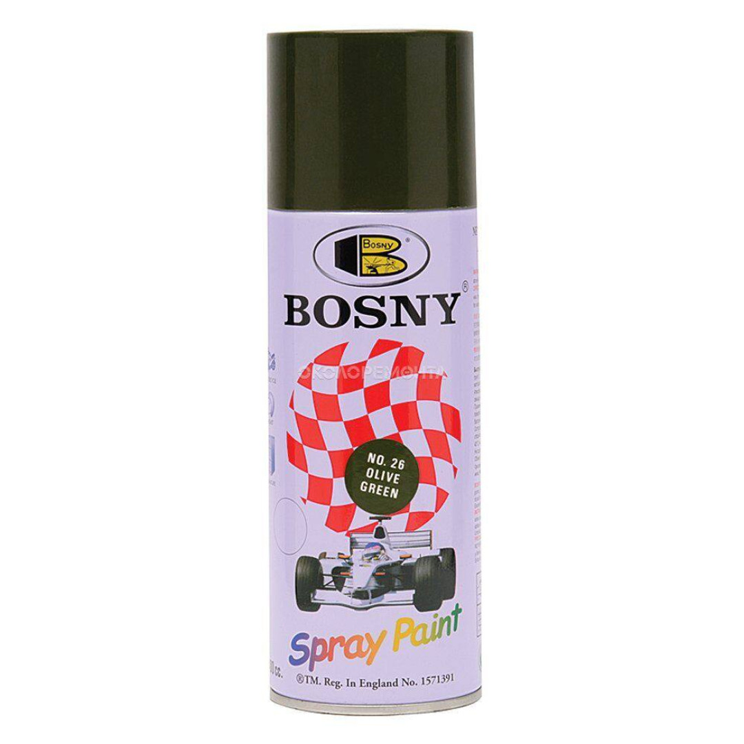 Описание Универсальная акриловая аэрозольная эмаль Bosny зелено-оливковый (26) RAL 6007