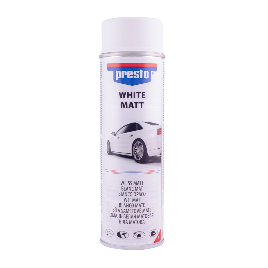 Описание Эмаль аэрозольная универсальная акриловая Presto белая матовая (501784), 500 мл
