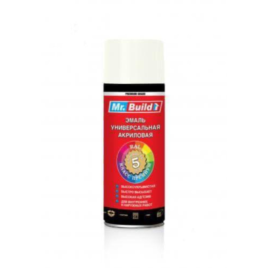 Mr. Build – акриловая спрей эмаль для окрашивания металлических, деревянных, керамических поверхностей, идеально ложится на все виды пластмасс и пластиков. Подходит для внутренних и наружных работ. Атмосферостойкая. Не течет. Не выгорает. Не желтеет. Имеет яркий цвет.