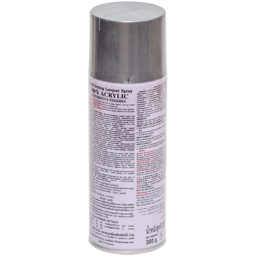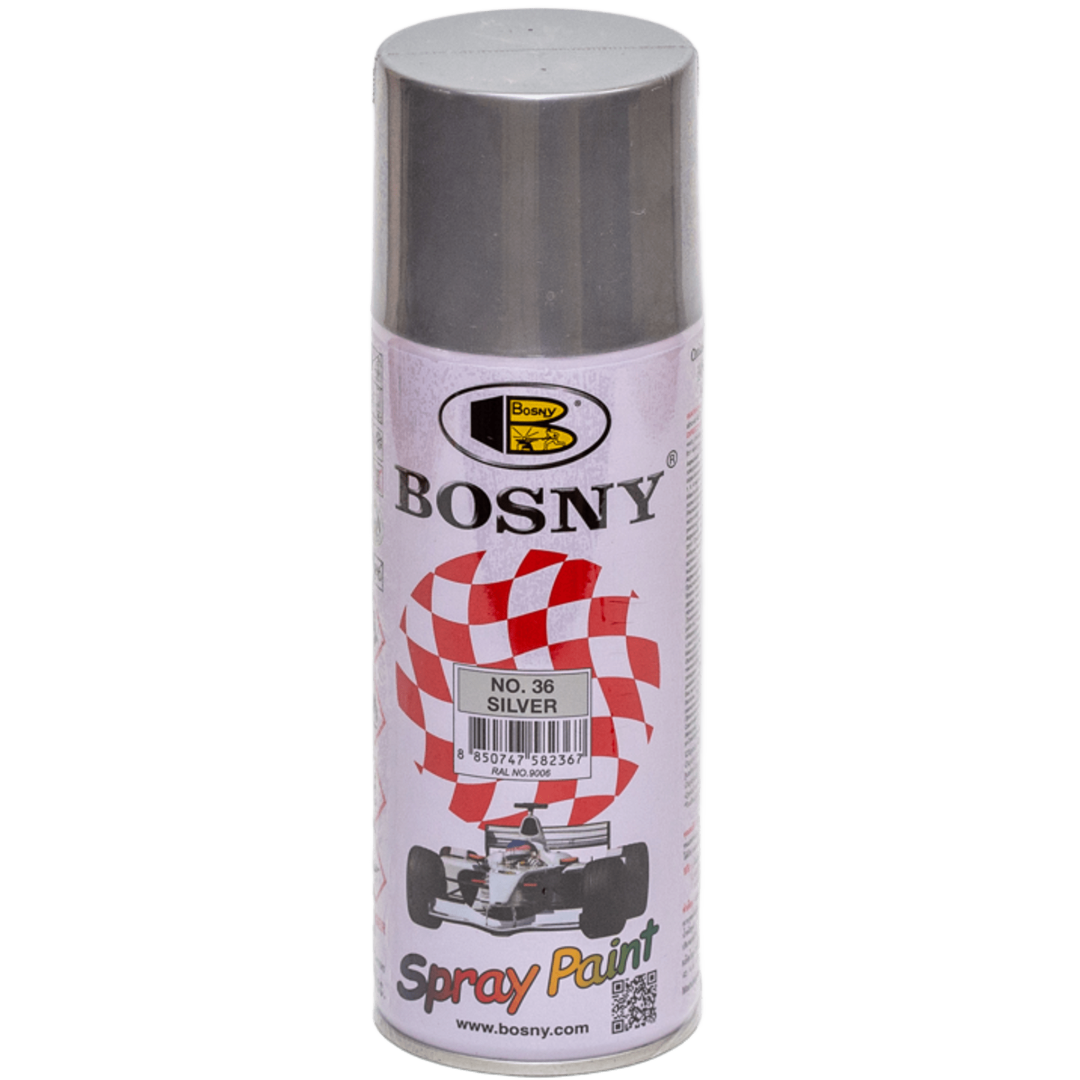 Основные характеристики Универсальная акриловая аэрозольная эмаль Bosny алюминевое серебро металлик (В-361)