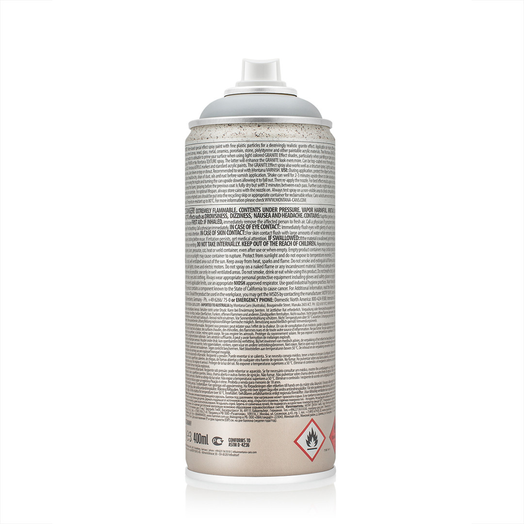 Montana Granit – декоративная отделочная аэрозольная краска на водной основе. Создает по фактуре и цвету эффект гранитной поверхности. Краска может наноситься на разные поверхности и находит свое применение в художественных мастерских, для декоративного окрашивания предметов интерьера и для хобби. Краска наносится на окрашенную или грунтованную поверхность. Устойчивость краски к внешним воздействиям увеличивается при покрытии слоем бесцветного лака.