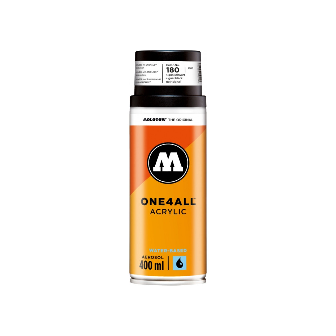 Molotow ONE4AL Acrylic – матовая быстросохнущая акриловая краска на водной основе (85% содержание воды), практически не имеющая запаха. Высокая стойкость к ультрафиолетовому излучению. Можно окрашивать практически любую поверхность. Для внутреннего и наружного применения.