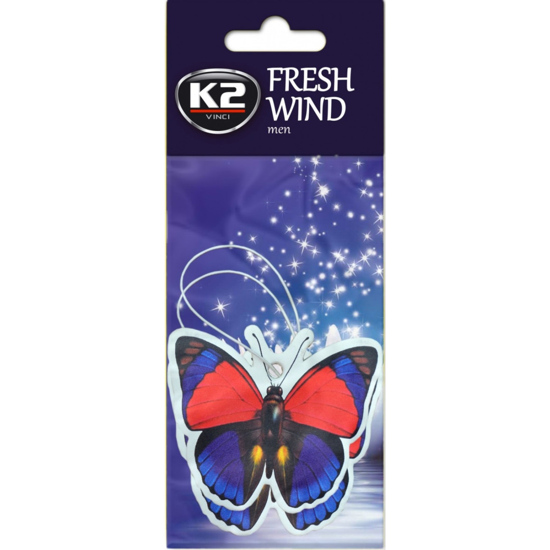Ароматизатор K2 VINCI FRESH WIND – освежитель воздуха с мужским ароматом. Бумажная подвеска освежает и придает приятный аромат салону автомобиля.