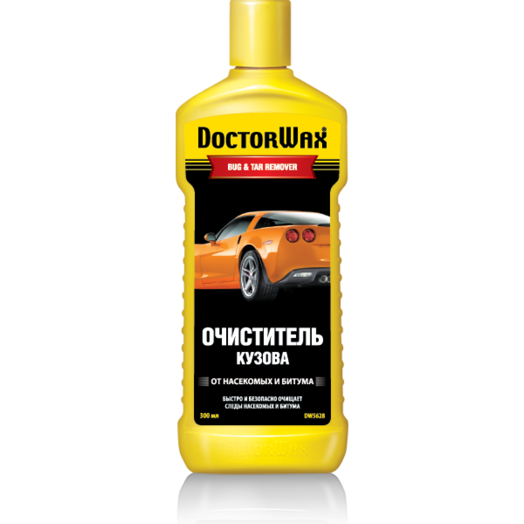 Очиститель кузова от следов насекомых и битума Bug&Tar Remover Doctor Wax - очищает лакокрасочные покрытия, пластиковые и хромированные бамперы, стекла автомобиля от битумных загрязнений, птичьего помета, почек деревьев, следов от насекомых, старых полиролей, птичий помет. Применяется для смывки воска и полиролей перед покраской.