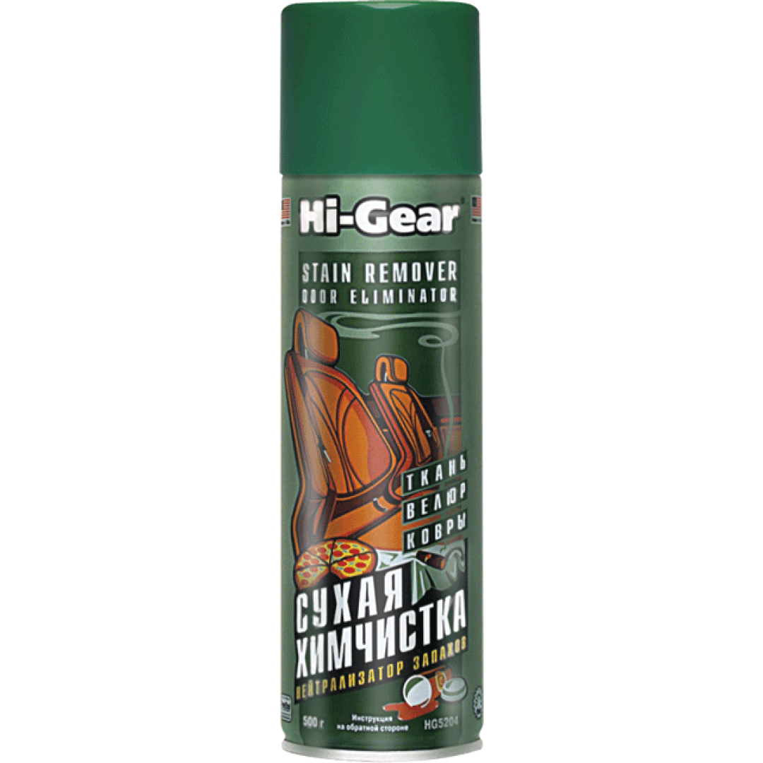 Очиститель обивки салона «Сухая химчистка» Hi-Gear ─ для эффективной чистки ковров и ткани от разной грязи и плохих ароматов, которые оставляют испорченная пища, животные, дым и синтетика. Может применяться в домашних целях. Восстановление блеска, структуры, цвета. Поднимает ворс ковров. Защищает от потери цвета из-за воздействия ультрафиолета. Образует гидрофобный и грязеотталкивающий слой.
