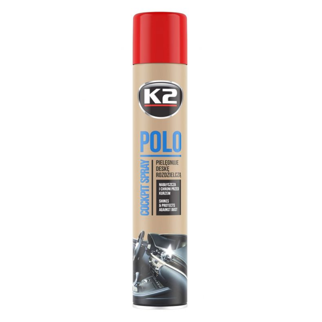 Полироль торпеды Polo Cockpit K2 – мягко очищает, придает блеск любой поверхности из пластика, винила, каучука и резины независимо от их цвета и структуры. Наночастицы проникают в структуру материала, чтобы восстановить его первоначальный цвет и блеск. Дают долговременную защиту от нового появления грязи и пыли. Рекомендуется для ухода за приборной панелью, пластмассой, резиной, а также мебелью, независимо от цвета. Уникальная композиция щекотливых ароматов оставляет в салоне автомобиля приятное чувство свежести. Полироль образует невидимую пленку, которая отталкивает пыльцу и грязюку, не позволяет выгорать поверхности от солнечных лучей.