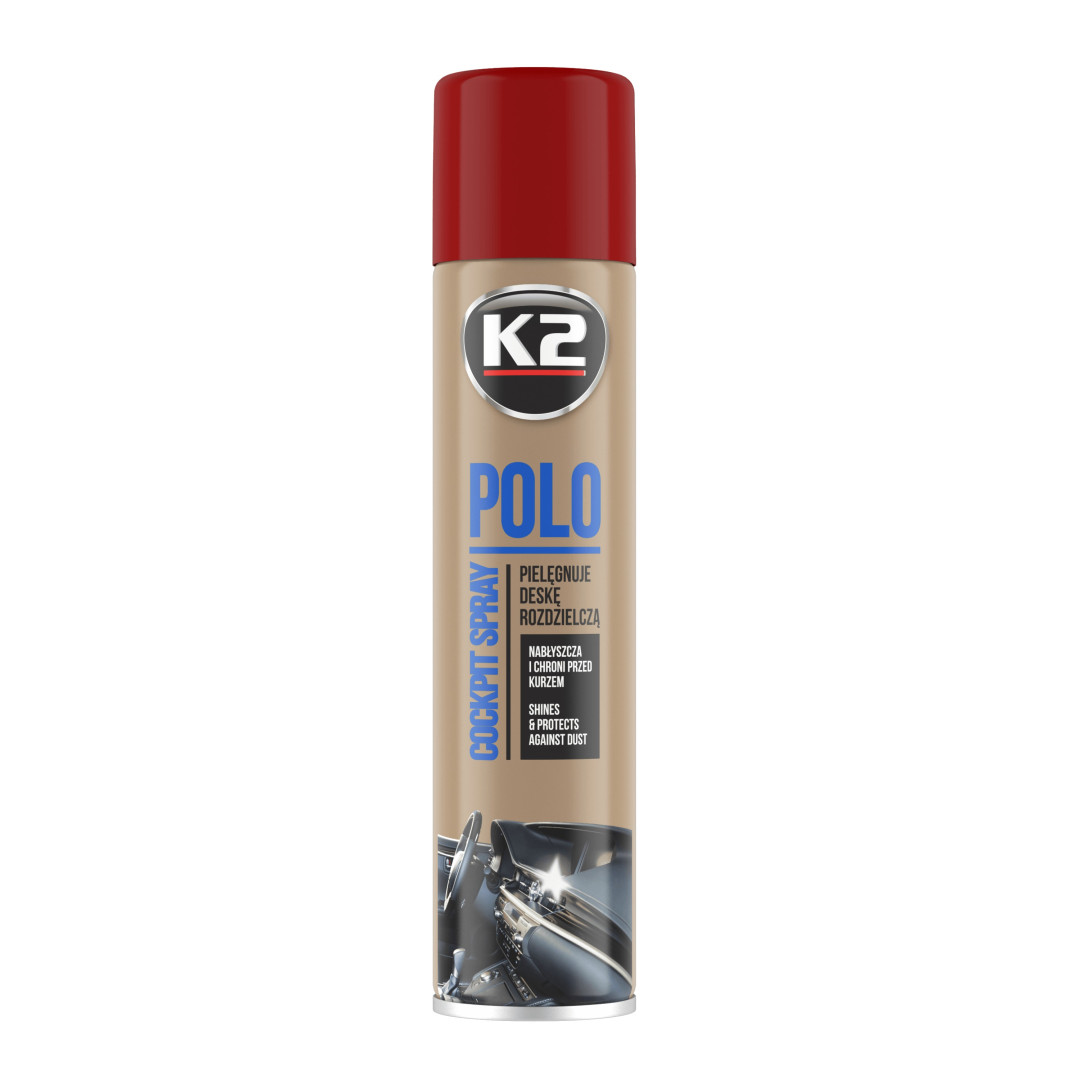 Полироль торпеды Polo Cockpit K2 – мягко очищает, придает блеск любой поверхности из пластика, винила, каучука и резины независимо от их цвета и структуры. Наночастицы проникают в структуру материала, чтобы восстановить его первоначальный цвет и блеск. Дают долговременную защиту от нового появления грязи и пыли. Рекомендуется для ухода за приборной панелью, пластмассой, резиной, а также мебелью, независимо от цвета. Уникальная композиция щекотливых ароматов оставляет в салоне автомобиля приятное чувство свежести. Полироль образует невидимую пленку, которая отталкивает пыльцу и грязюку, не позволяет выгорать поверхности от солнечных лучей.