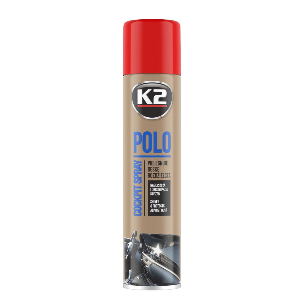 Полироль торпеды Polo Cockpit K2 – мягко очищает, придает блеск любой поверхности из пластика, винила, каучука и резины независимо от их цвета и структуры. Наночастицы проникают в структуру материала, чтобы восстановить его первоначальный цвет и блеск. Дают долговременную защиту от нового появления грязи и пыли. Рекомендуется для ухода за приборной панелью, пластмассой, резиной, а также мебелью, независимо от цвета. Уникальная композиция щекотливых ароматов оставляет в салоне автомобиля приятное чувство свежести. Полироль образует невидимую пленку, которая отталкивает пыльцу и грязюку, не позволяет выгорать поверхности от солнечных лучей.