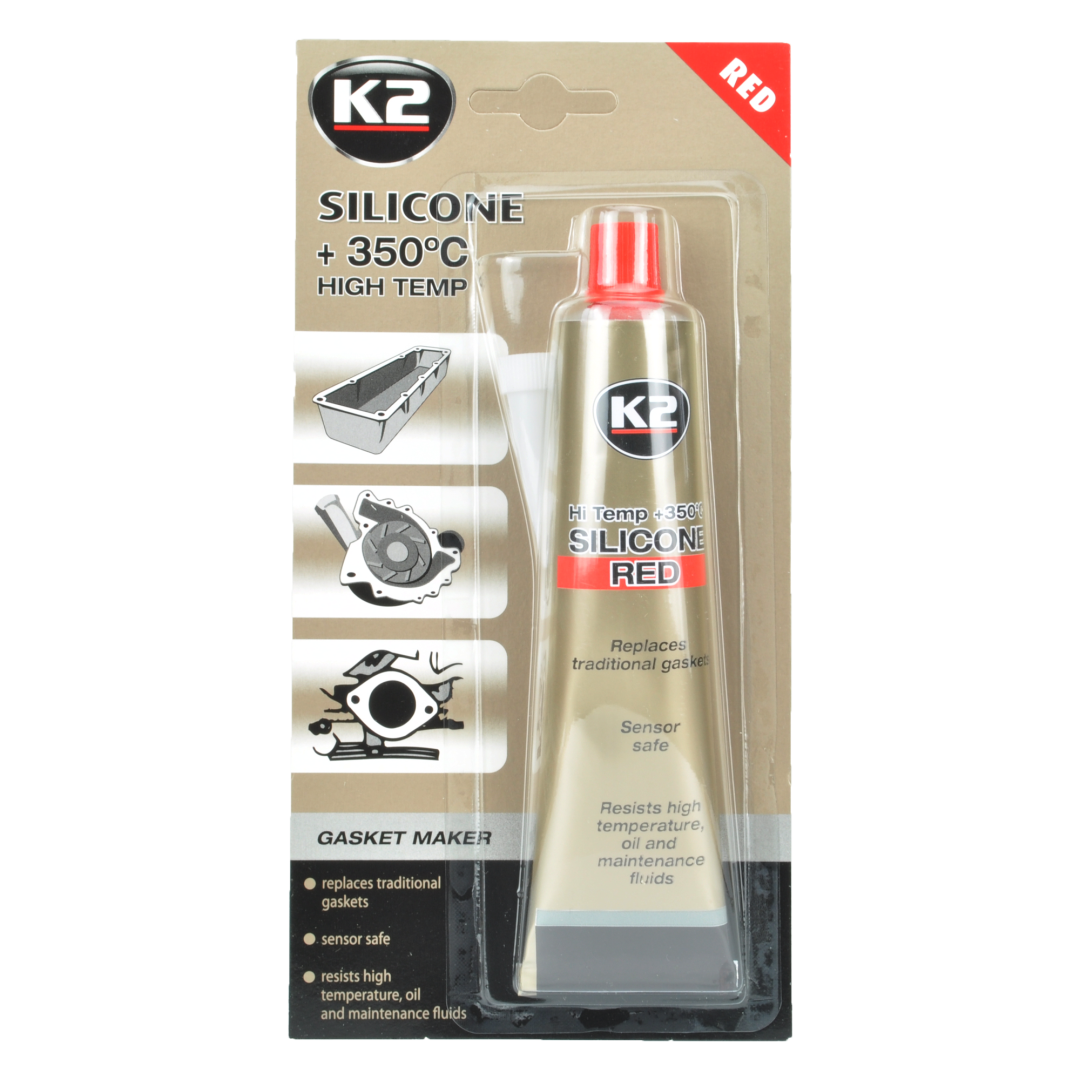 Высокотемпературный герметик силиконовый красный Silicone К2 – герметизирующее средство, создающее при нанесении сформированную прокладку, которая не будет оседать, растрескиваться, и смещаться даже при температуре +350 ℃. Для герметизации выхлопных коллекторов, термостатов, водяных и масляных насосов, клапанов и других деталей. Заменяет широко известные и распространенные прокладки из резины, войлока, асбеста, пробки и бумаги. Допустимо применение в работе с керамикой, алюминием, пластиком и стеклом. Средство не поступает в реакцию с антифризом, водой и маслом. Безопасный для лямбда зондов и индикаторов кислорода. Может использоваться дома и в мастерских.
