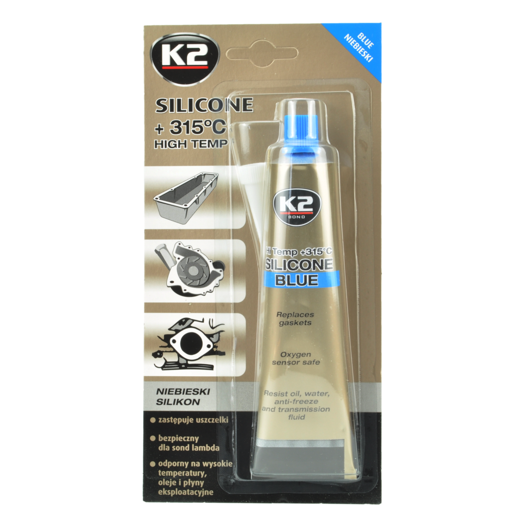 Высокотемпературный герметик силиконовый синий Silicone К2 – герметизирующее средство, создающее при нанесении сформированную прокладку, которая не будет оседать, растрескиваться, и смещаться даже при температуре +350 ℃. Для герметизации выхлопных коллекторов, термостатов, водяных и масляных насосов, клапанов и других деталей. Заменяет широко известные и распространенные прокладки из резины, войлока, асбеста, пробки и бумаги. Допустимо применение в работе с керамикой, алюминием, пластиком и стеклом. Средство не поступает в реакцию с антифризом, водой и маслом. Безопасный для лямбда зондов и индикаторов кислорода. Может использоваться дома и в мастерских.