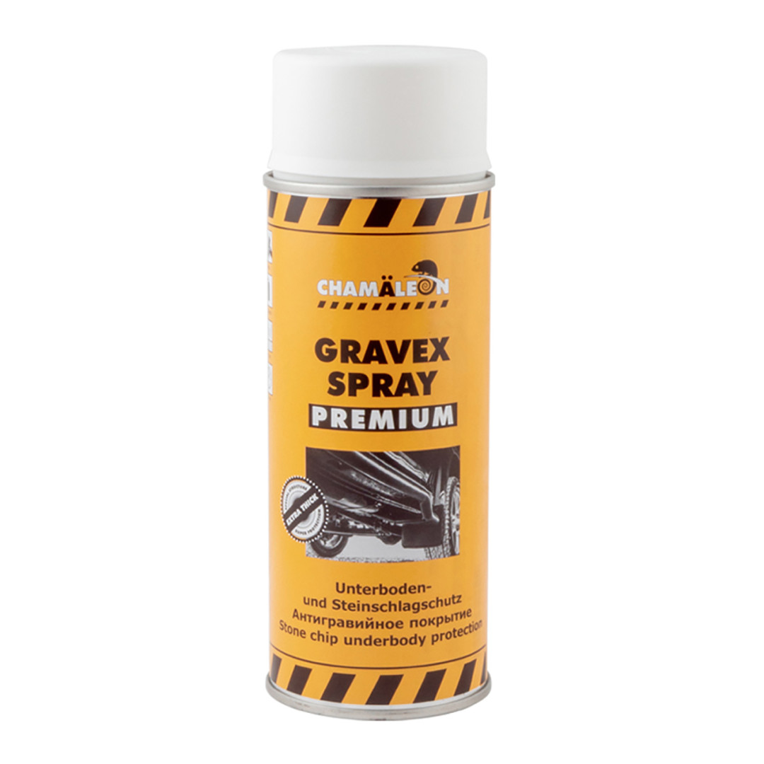 Chamaeleon Gravex Spray – антигравийное покрытие применяется для защиты днища, арок и порогов автомобиля. Может быть окрашено любыми лакокрасочными материалами. Прекрасная адгезия. Устойчив к слабым кислотам, основаниям и солям. Обладает шумопоглощающим свойством. Очень хорошая адгезия.
