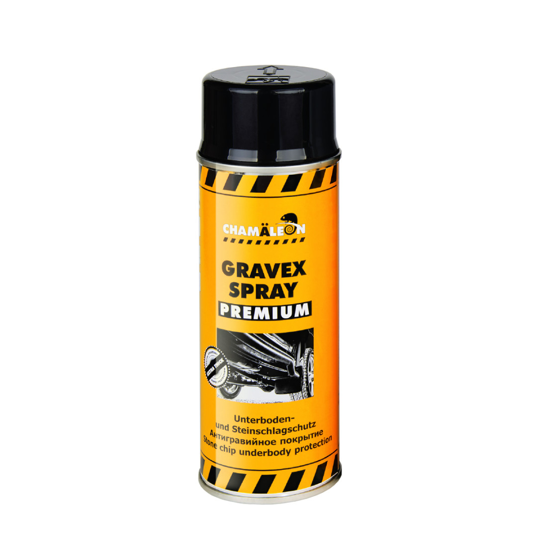 Chamaeleon Gravex Spray – антигравийное покрытие применяется для защиты днища, арок и порогов автомобиля. Может быть окрашено любыми лакокрасочными материалами. Прекрасная адгезия. Устойчив к слабым кислотам, основаниям и солям. Обладает шумопоглощающим свойством. Очень хорошая адгезия.