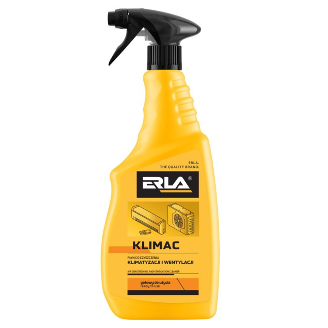 Очиститель для систем кондиционирования, отопления и вентиляции KLIMAC ERLA - готовое к применению средство для очистки, освежения и удаления неприятных запахов из систем кондиционирования, отопления и вентиляции, испарителей, конденсаторов и фильтров внутри и снаружи зданий. Активная пена оставляет после себя приятный свежий аромат. Чистку кондиционеров необходимо проводить не реже двух раз в год в периоды: март-май и октябрь-ноябрь. Нейтральный для алюминиевых, медных и пластиковых элементов,