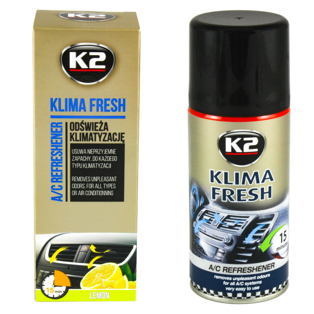 Освежитель системы автокондиционера Klima Fresh лимон K2 – продукт, освежающий любые виды автомобильных кондиционеров. Прост в эксплуатации. После применения остается приятный запах. Высокая эффективность средства обеспечивает результат уже через 15 минут.