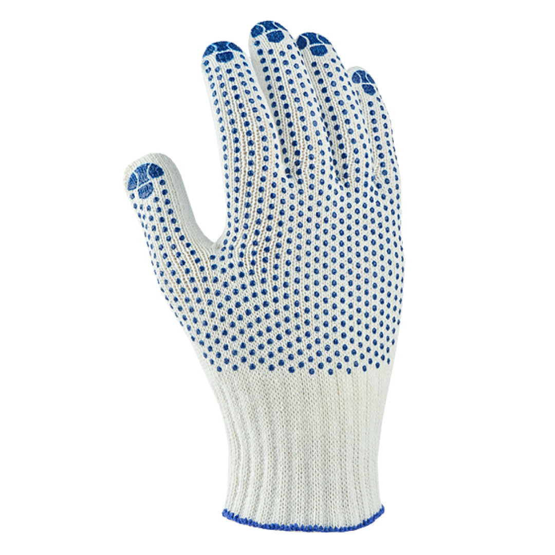 Бесшовные защитные перчатки с рисунком ПВХ. Армирующее поливинилхлоридное покрытие обеспечивает хорошее сцепление с поверхностью, что помогает крепче удерживать скользкие предметы и уменьшает нагрузку на руки. Перчатки ХБ из ПВХ наладонником обеспечивают защиту кистей рук и области запястий от механических повреждений и загрязнений. Чем больше суммарная площадь ПВХ напыления, тем изделие прочнее. Такое специальное покрытие продлевает срок службы перчаток.