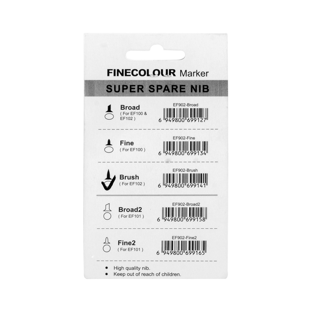 Набор перьев Finecolour EF902-Brush – сменный наконечник в форме перо-кисти, линия толщиной 0.5-10 мм. Подходит для маркеров EF102. В наборе 5 наконечников.