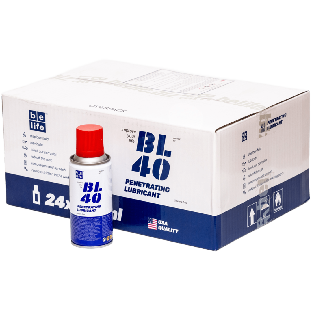 BeLife BL-40/150 ( жидкий ключ) – быстродействующее универсальное синтетическое аэрозольное средство. Применяется для смазывания, защиты, очистки деталей и механизмов, а также в качестве комплексной защиты от ржавчины. Уникальная формула обеспечивает глубокое проникновение смазывающих компонентов даже к сильно изъеденными коррозией деталей и механизмов. Смазывает любые трущиеся поверхности. Не содержит силикона.