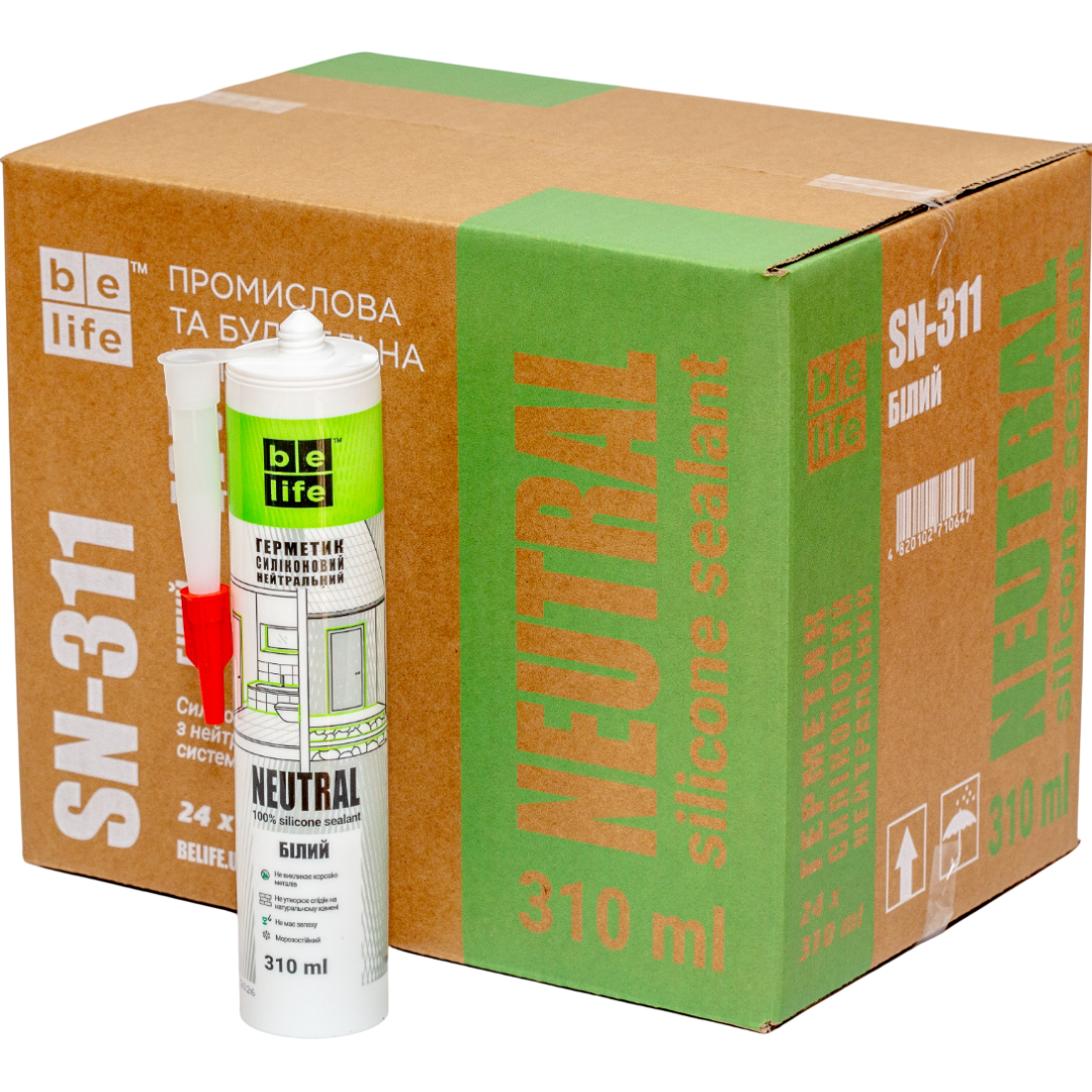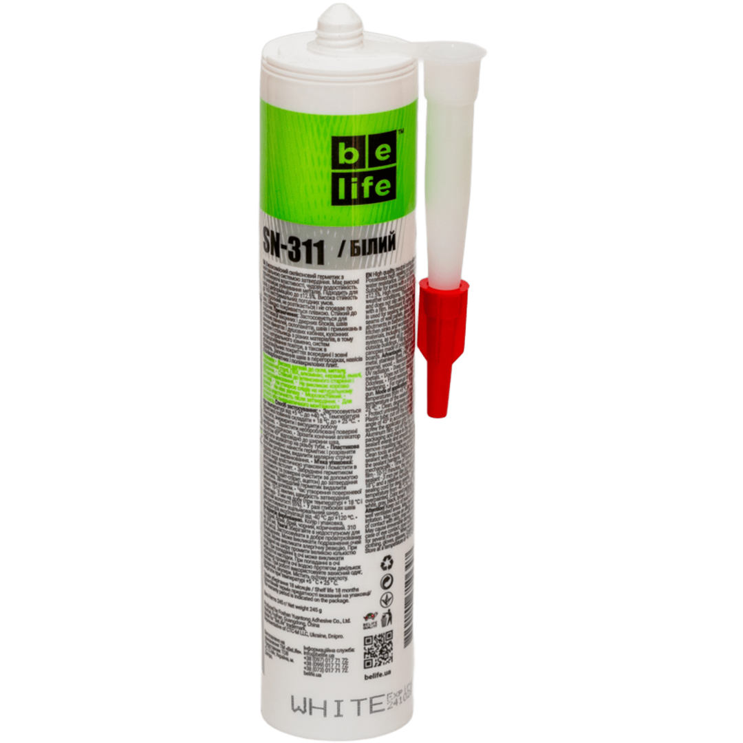 Описание Нейтральный силиконовый герметик белый BeLife (SN-311), 310 мл