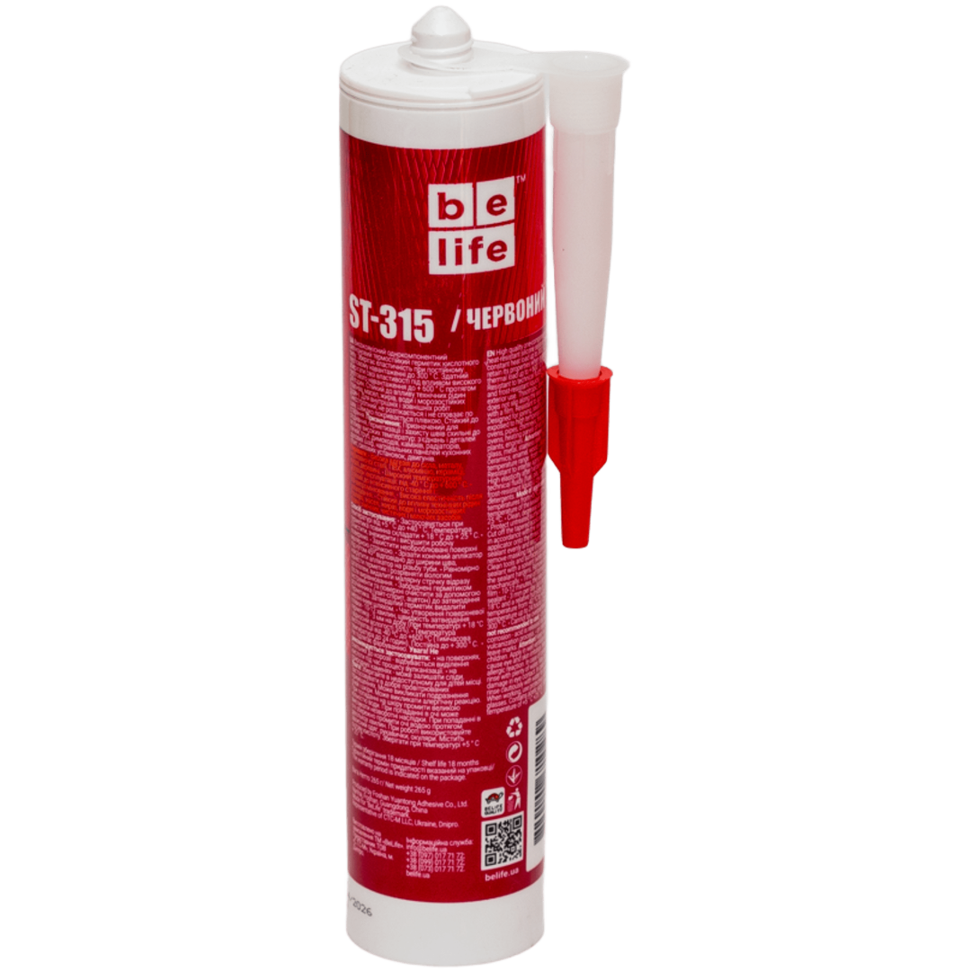 Описание Термостойкий силиконовый герметик красный BeLife (ST-315), 310 мл