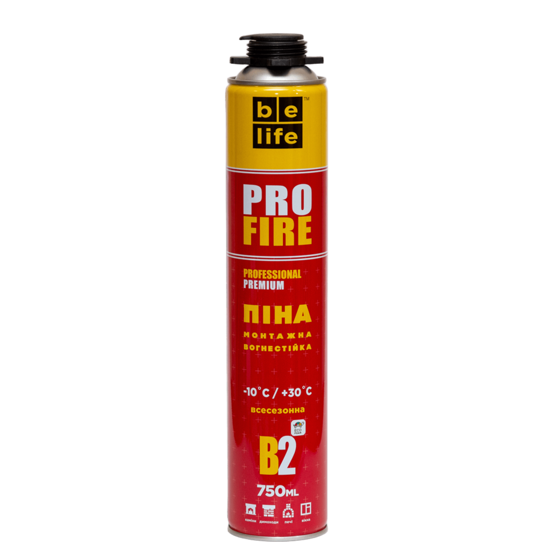 BeLife Pro-FR50 (PROFIRE) высококачественная профессиональная огнестойкая пена с объемом баллона 750 мл. Разработана специально для применения в узлах, требующих повышенных мер защиты от огня. Класс воспламеняемости B2 (самозатухающая пена). Огнестойкость испытана в соответствии с Европейским Стандартом EN 71366-4 — товар имеет сертификат качества. Имеет более высокую прочность, плотность и эластичность. Быстро застывает. Лучше заполняет пустоты. Устойчива к повышенной влажности, препятствует появлению плесневых грибков.