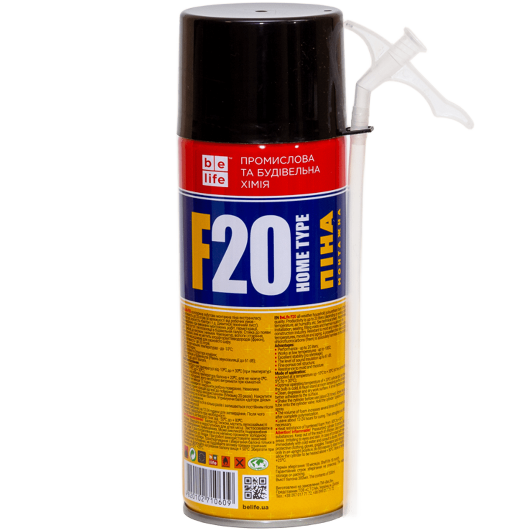 BeLife F20 всесезонная бытовая монтажная пена высшего качества. Обладает высокой производительностью и стабильностью, низким вторичным расширением и быстрым отверждением. Отличная адгезия практически ко всем основаниям. Стабильная, отсутствует вторичная усадка. Высокая плотность и упругость. Обладает тепло и звукоизоляционными свойствами. Для бытового применения.