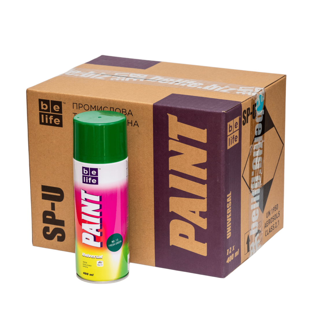 BeLife Spray Paint UNIVERSAL – 100% акриловая аэрозольная фарба. Высокая адгезия к металлическим, пластмассовым, деревянным, бетонным и многим другим поверхностям. Можно использовать в процессе декоративных и реставрационно-ремонтных работ, подходит как для внутренних, так и для наружных работ. Атмосферостойкая, стойкая к истиранию, не выгорает и не трескается, устойчива к моющим средствам. Хорошая укрывистость, удобная в применении, не оставляет подтеков. Конечное покрытие приобретает глянцевый блеск.