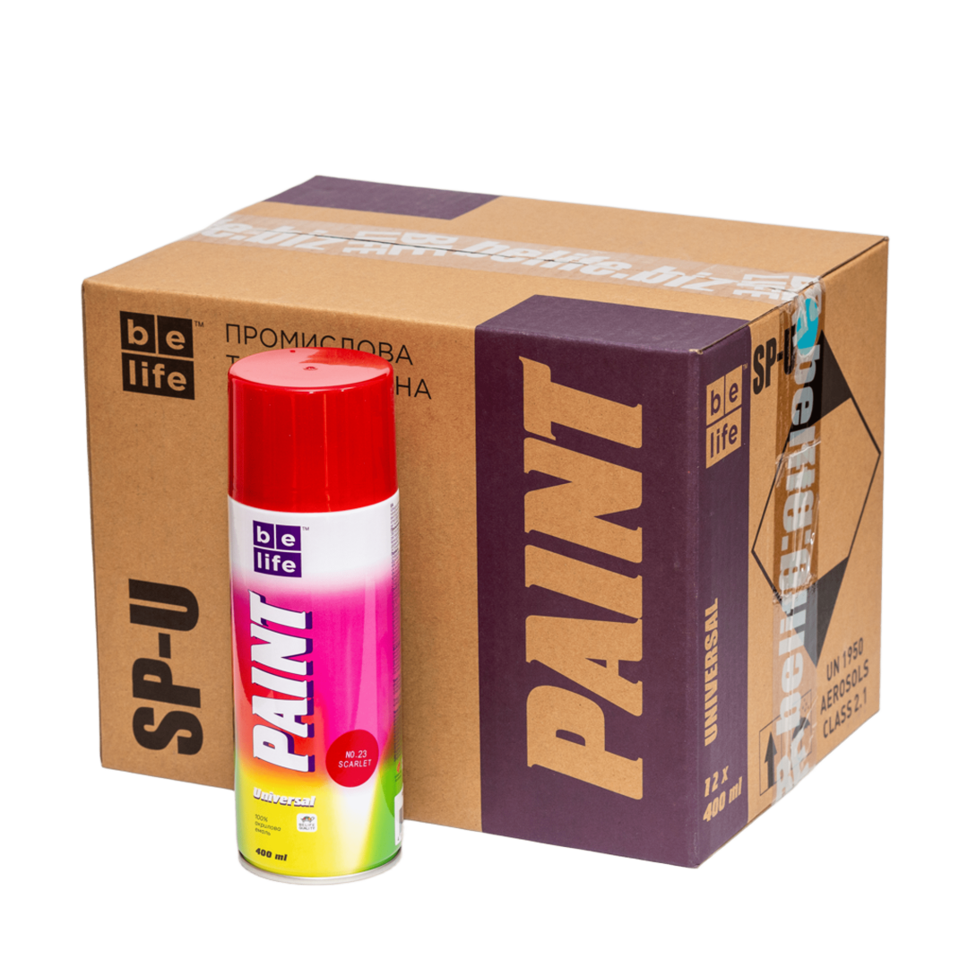 BeLife Spray Paint UNIVERSAL – 100% акриловая аэрозольная краска. Высокая адгезия к металлическим, пластмассовым, деревянным, бетонным и многим другим поверхностям. Можно использовать в процессе декоративных и реставрационно-ремонтных работ, подходит как для внутренних, так и для наружных работ. Атмосферостойкая, стойкая к истиранию, не выгорает и не трескается, устойчива к моющим средствам. Хорошая укрывистость, удобная в применении, не оставляет подтеков. Конечное покрытие приобретает глянцевый блеск.
