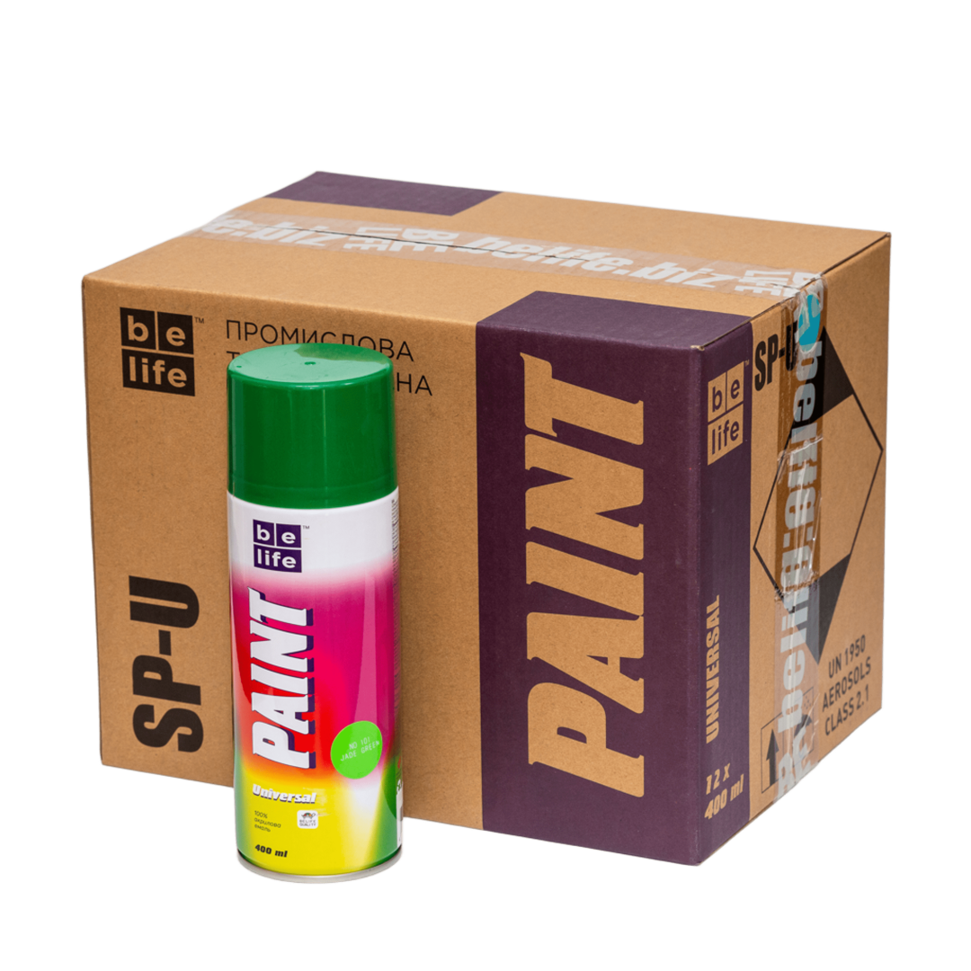 BeLife Spray Paint UNIVERSAL – 100% акриловая аэрозольная краска. Высокая адгезия к металлическим, пластмассовым, деревянным, бетонным и многим другим поверхностям. Можно использовать в процессе декоративных и реставрационно-ремонтных работ, подходит как для внутренних, так и для наружных работ. Атмосферостойкая, стойкая к истиранию, не выгорает и не трескается, устойчива к моющим средствам. Хорошая укрывистость, удобная в применении, не оставляет подтеков. Конечное покрытие приобретает глянцевый блеск.
