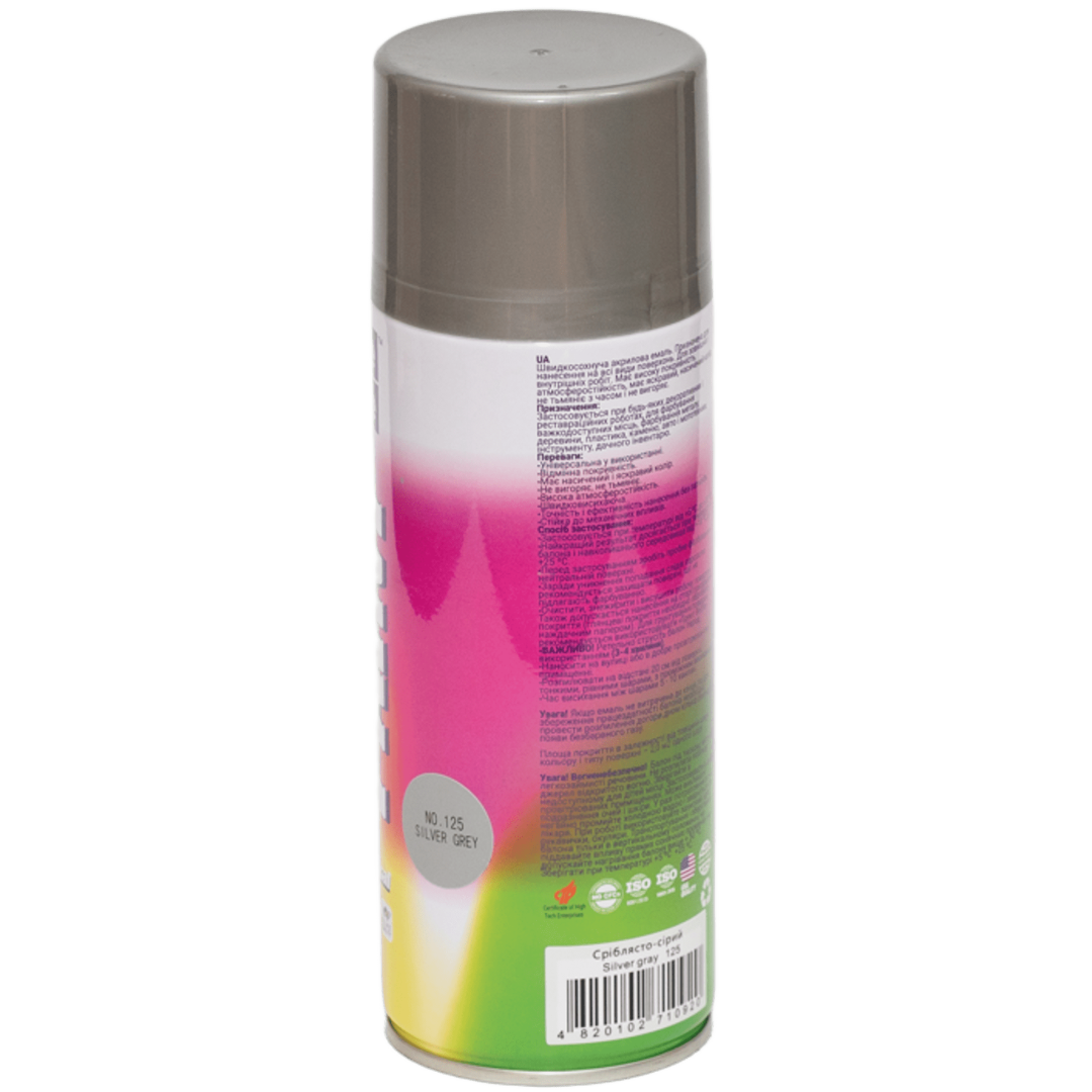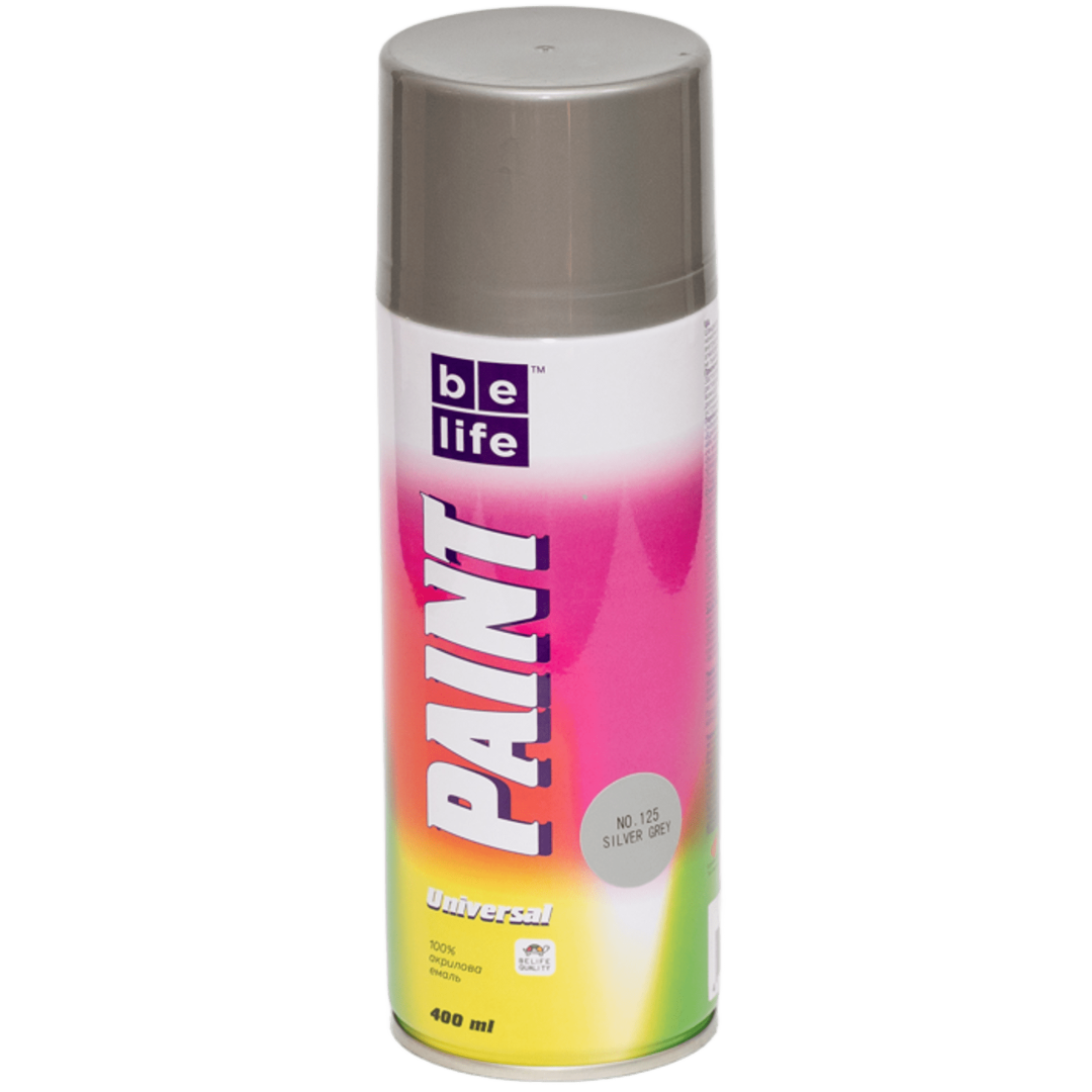 Описание Универсальная акриловая аэрозольная эмаль BeLife серое серебро (125)