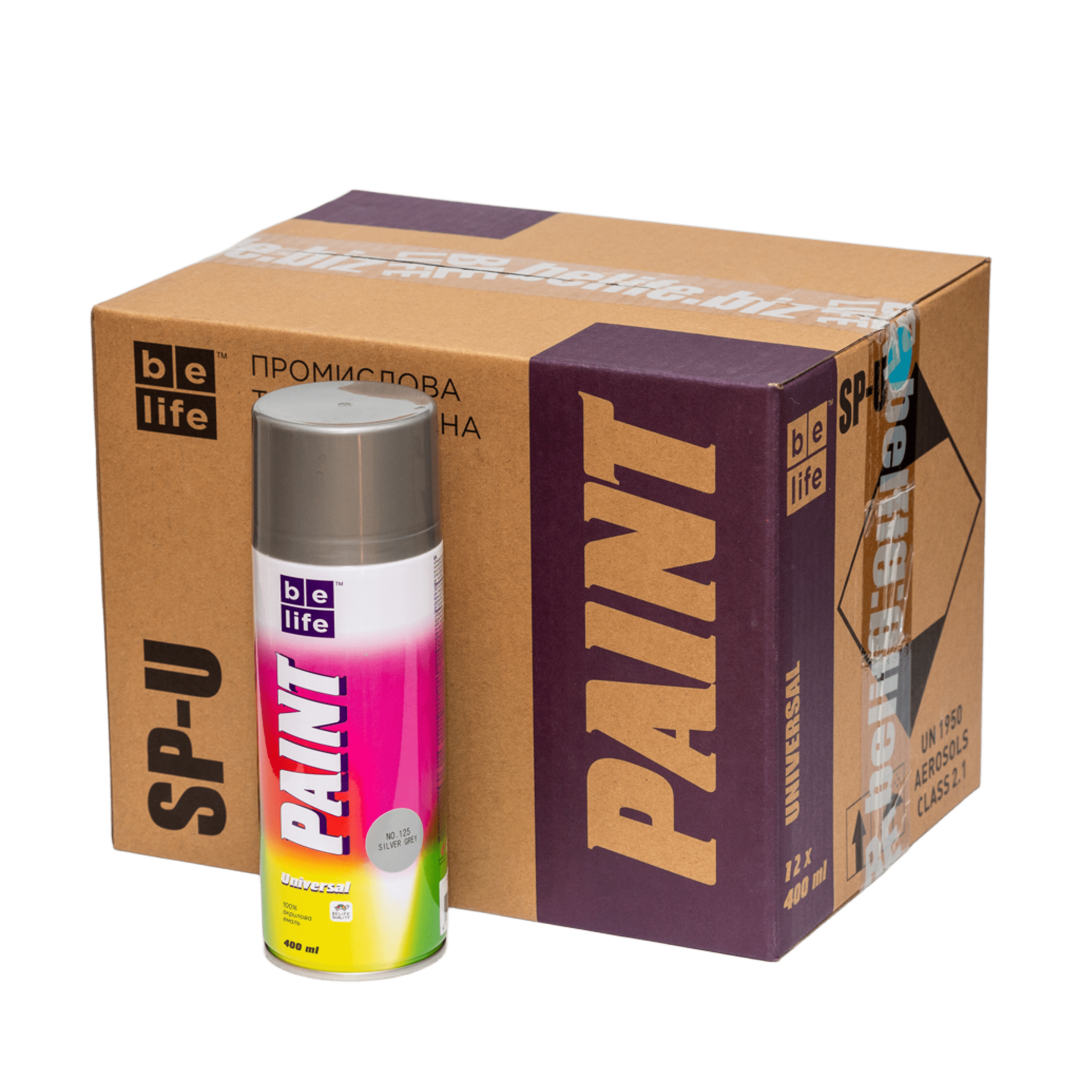 BeLife Spray Paint UNIVERSAL – 100% акриловая аэрозольная краска. Высокая адгезия к металлическим, пластмассовым, деревянным, бетонным и многим другим поверхностям. Можно использовать в процессе декоративных и реставрационно-ремонтных работ, подходит как для внутренних, так и для наружных работ. Атмосферостойкая, стойкая к истиранию, не выгорает и не трескается, устойчива к моющим средствам. Хорошая укрывистость, удобная в применении, не оставляет подтеков. Конечное покрытие приобретает глянцевый блеск.