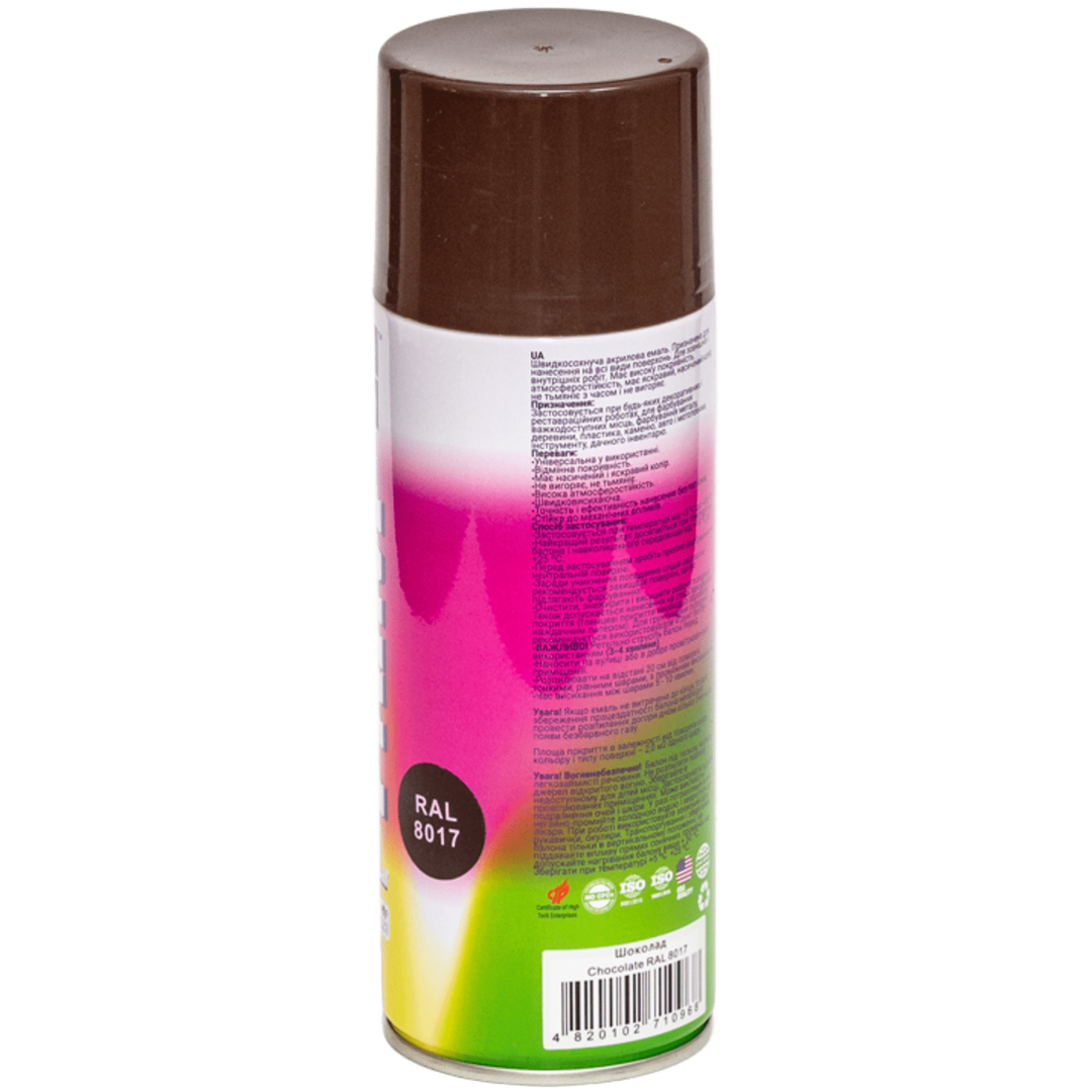 Основные характеристики Универсальная акриловая аэрозольная эмаль BeLife шоколадный (RAL 8017)
