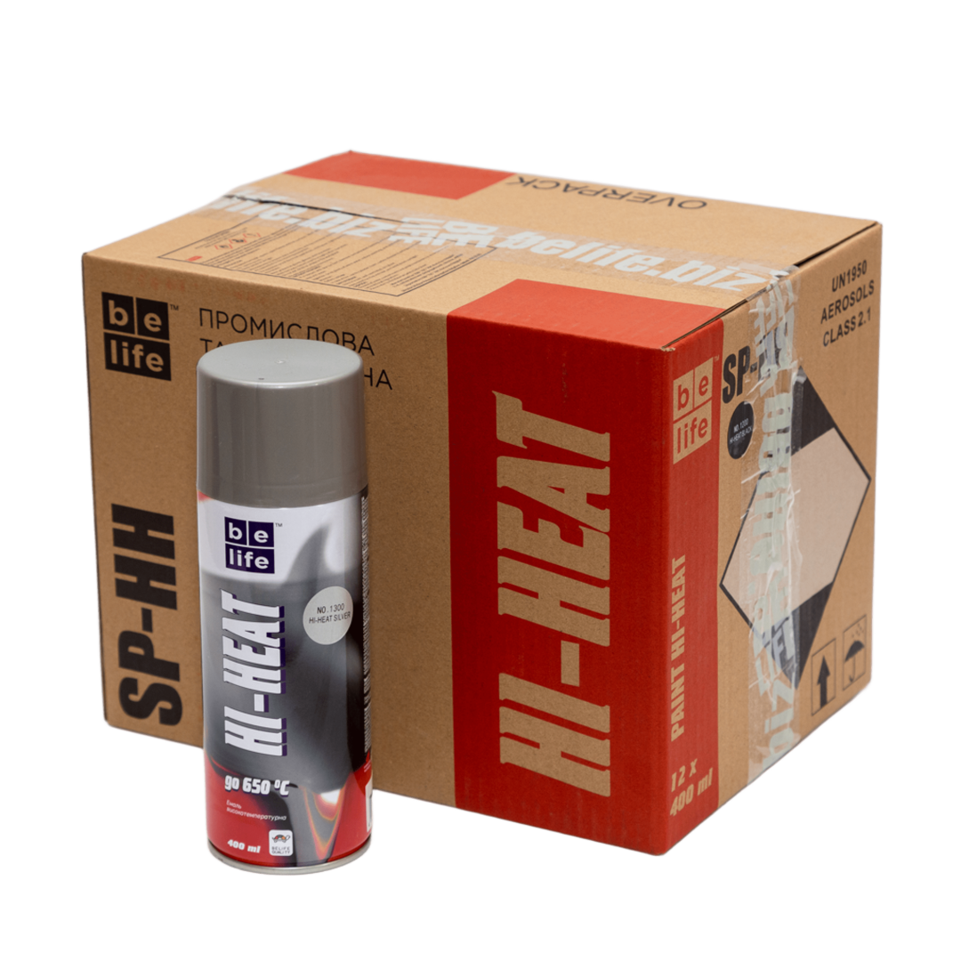 BeLife HI-Heat Paint – специализированная жаропрочная высококачественная краска для поверхностей, подвергающихся воздействию высоких температур до 650 °С. Супер эластичная, имеет стабильный цвет. Используется для покраски каминов, радиаторов, бойлеров, специализированного промышленного оборудования, а также для покраски деталей автомобиля, подверженных тепловой нагрузке, например выхлопной трубы.