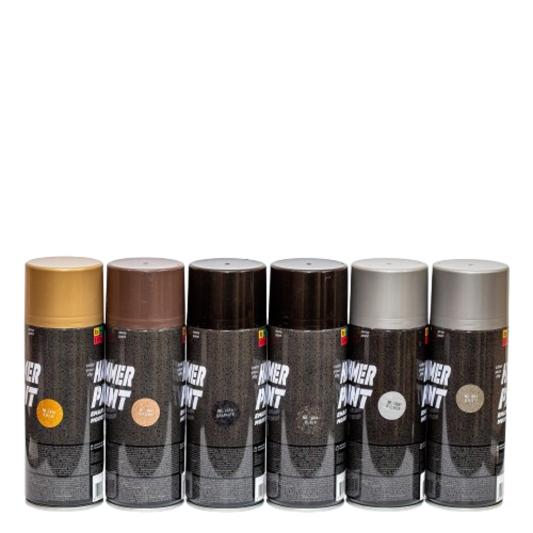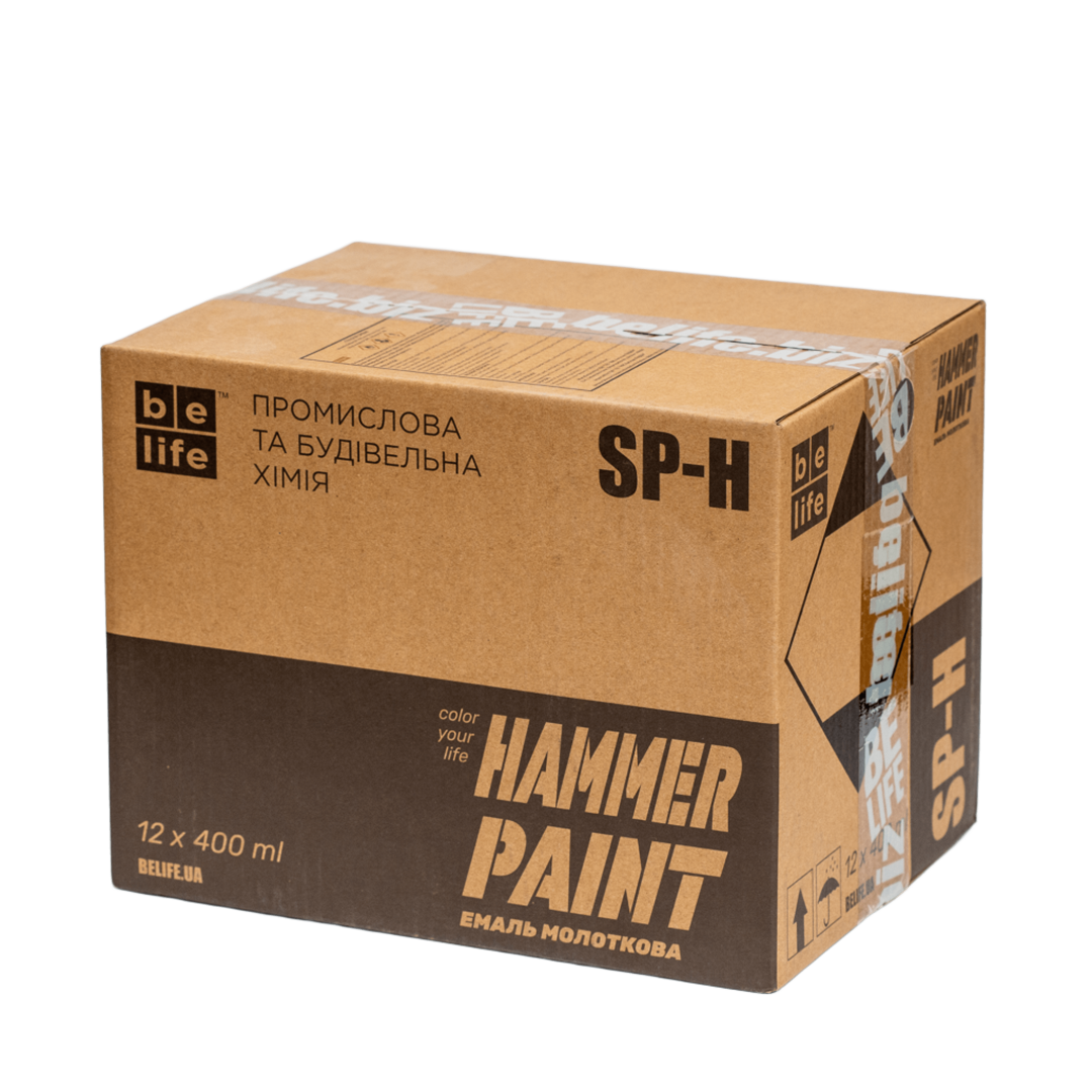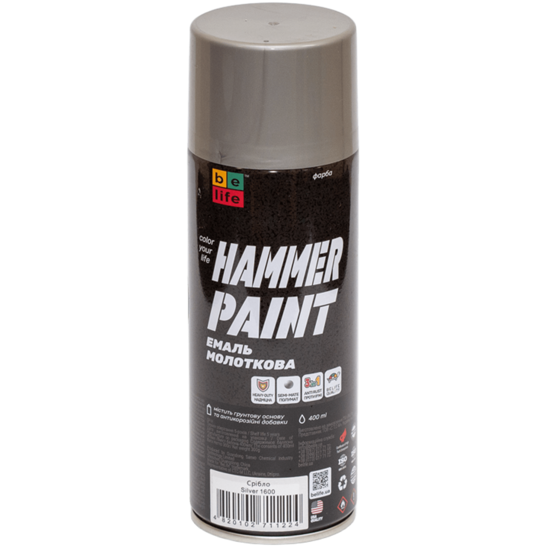 BeLife Spray Paint Hammer – аэрозольная акриловая эмаль с «молотковым» эффектом, для окрашивания поверхностей из черных металлов подверженных коррозии или уже имеющих следы ржавчины. Оказывает декоративный эффект «ручная молотковая чеканка», образуя своеобразный фактурный рисунок. Отлично скрывает неровности металла, дерева. В своем составе содержит алюминиевые хлопья, создающие характерную кружевную фактуру. Можно окрашивать металлоконструкции, трубы, кованые изделия, входные двери, ворота, сейфы.