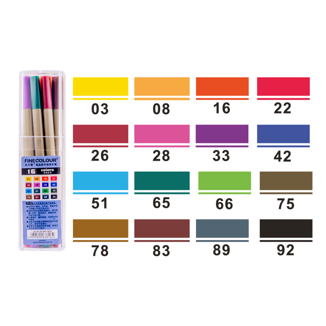 Основные характеристики Набор маркеров Finecolour Liner 16 цветов (EF300-TB16)