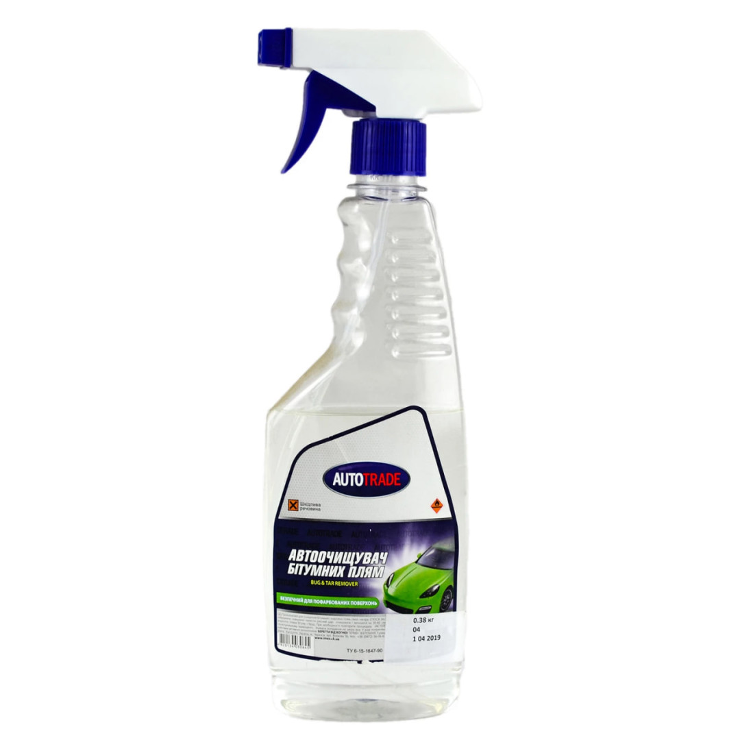 Очиститель битума – безопасен для лакокрасочного покрытия, который эффективно и быстро справится с пятнами битума, смолы, масел, смазочных масел, асфальтной крошки, старой полироли, следы насекомых. Устраняет загрязнения, которые невозможно очистить шампунем во время обычной мойки. Безопасный для любых типов лакокрасочных покрытий, а также для хромированных, резиновых и пластиковых поверхностей. Не вызывает эффекта матирования. Используется для очистки кузова, стекла, колесных дисков, бамперов, фар, радиаторной решетки, хромированных деталей.
