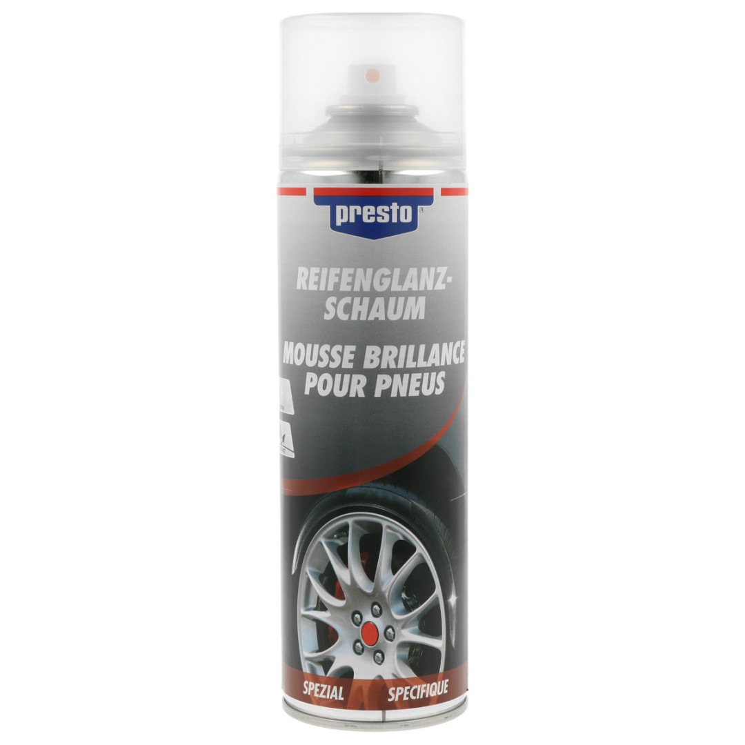 Профессиональная пенная PRESTO – для высококачественной экспресс-очистки и обновления боковых поверхностей покрышек. Эффективно растворяет и быстро смывает все накопления. Формирует на поверхности резины защитную грязеотталкивающую полимерную пленку, обеспечивающую обрабатываемой поверхности ухоженный глянцевый вид новых покрышек. Не содержит растворитель.