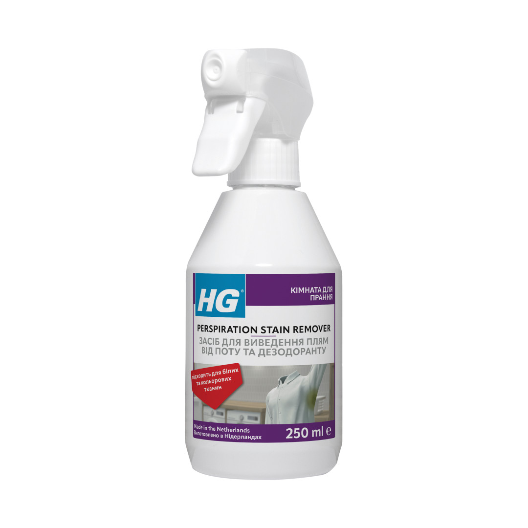 Средство для удаления пятен от пота и дезодоранта HG – для предварительной обработки для удаления пятен. Подходит для белых и цветных тканей. Использование этого средства перед каждой стиркой предотвращает появление желтых пятен на одежде и белье.