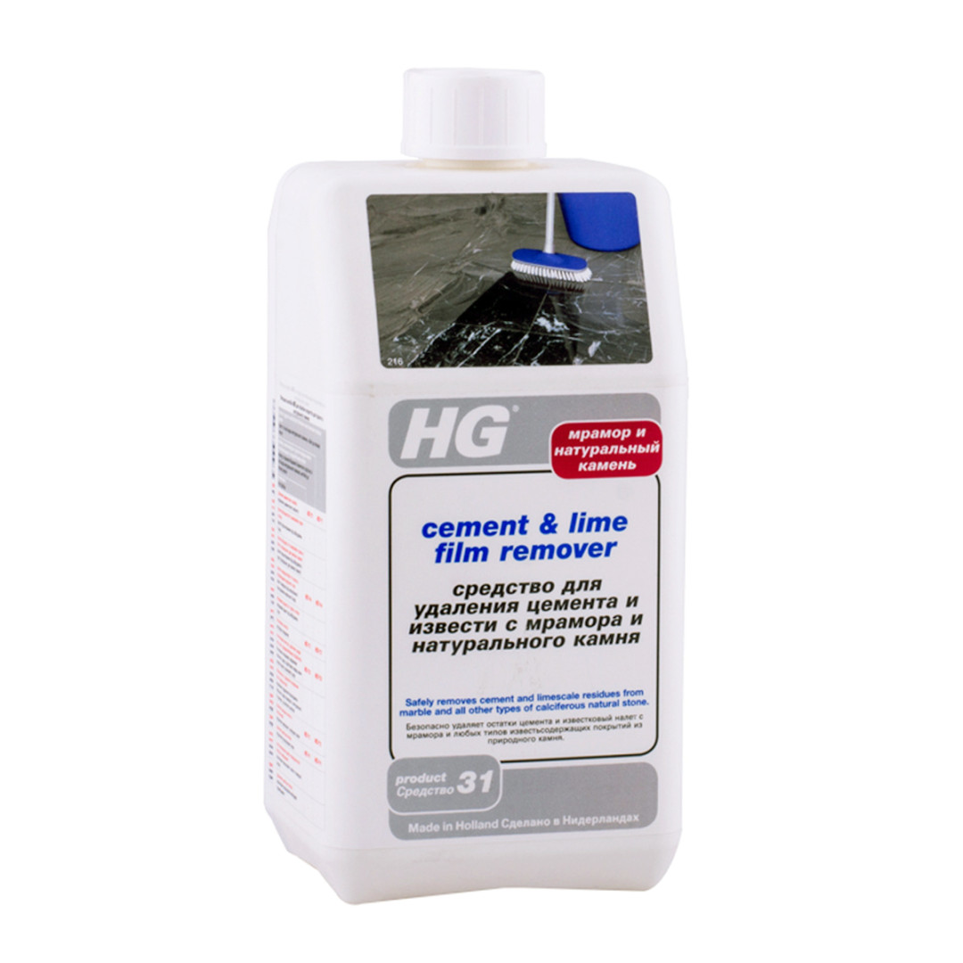 Средство для удаления цемента и извести из мрамора и натурального камня HG – удаляет остатки цемента (цементную пленку) и известкового налета с поверхностей из мрамора, гранита, травертина, тераццо и других видов натуральных камней. Подходит для цементной плитки и пластиковой плитки, содержащей кусочки природного камня, например гранита и мрамора. Не содержит кислот, поэтому безопасен для всех видов камня известнякового происхождения!