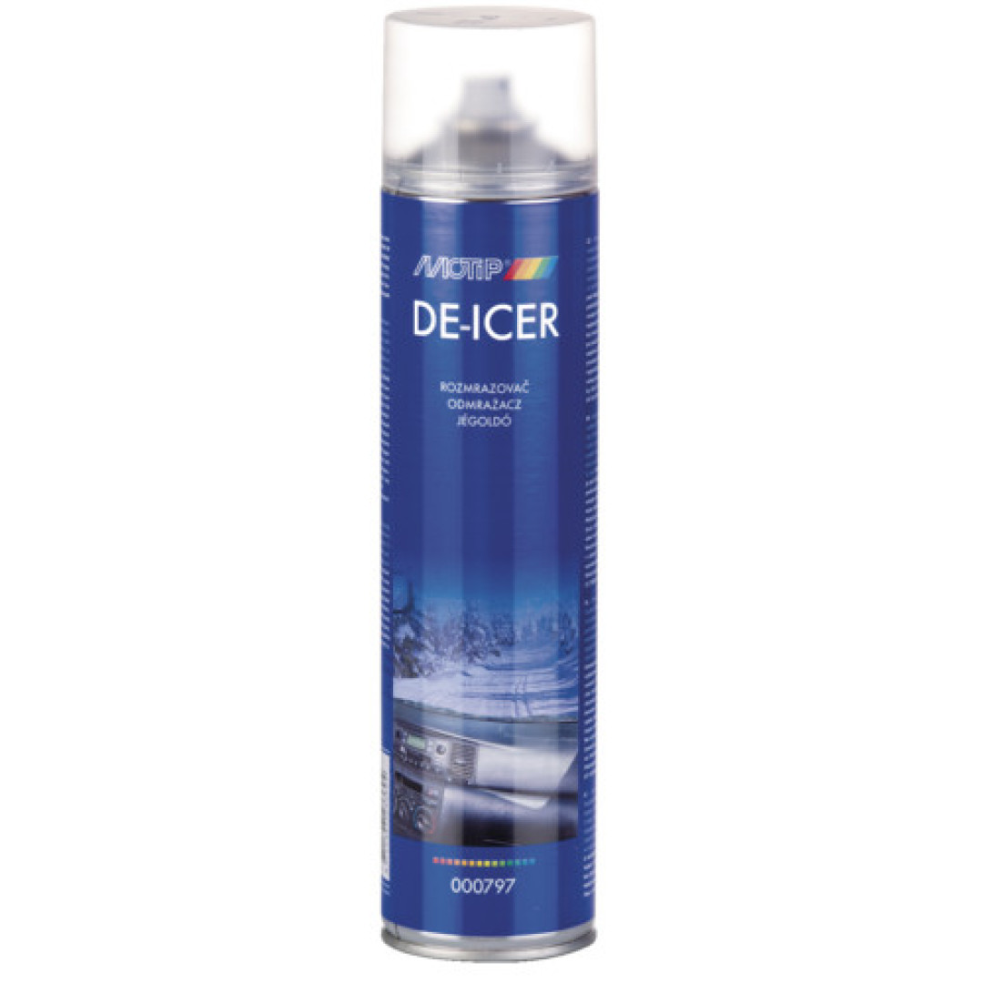 Размораживатель MOTIP DE-ICER – растворяет изморозь, лед и снег из стекла и дворников автомобиля. Покидает защитную пленку, которая не дает воде замерзнуть на стекле. Не используйте металлический скребок вместе с Motip Black Line, чтобы не повредить поверхность. Спрей содержит спирт и добавки, предотвращающие повторное обледенение поверхностей.