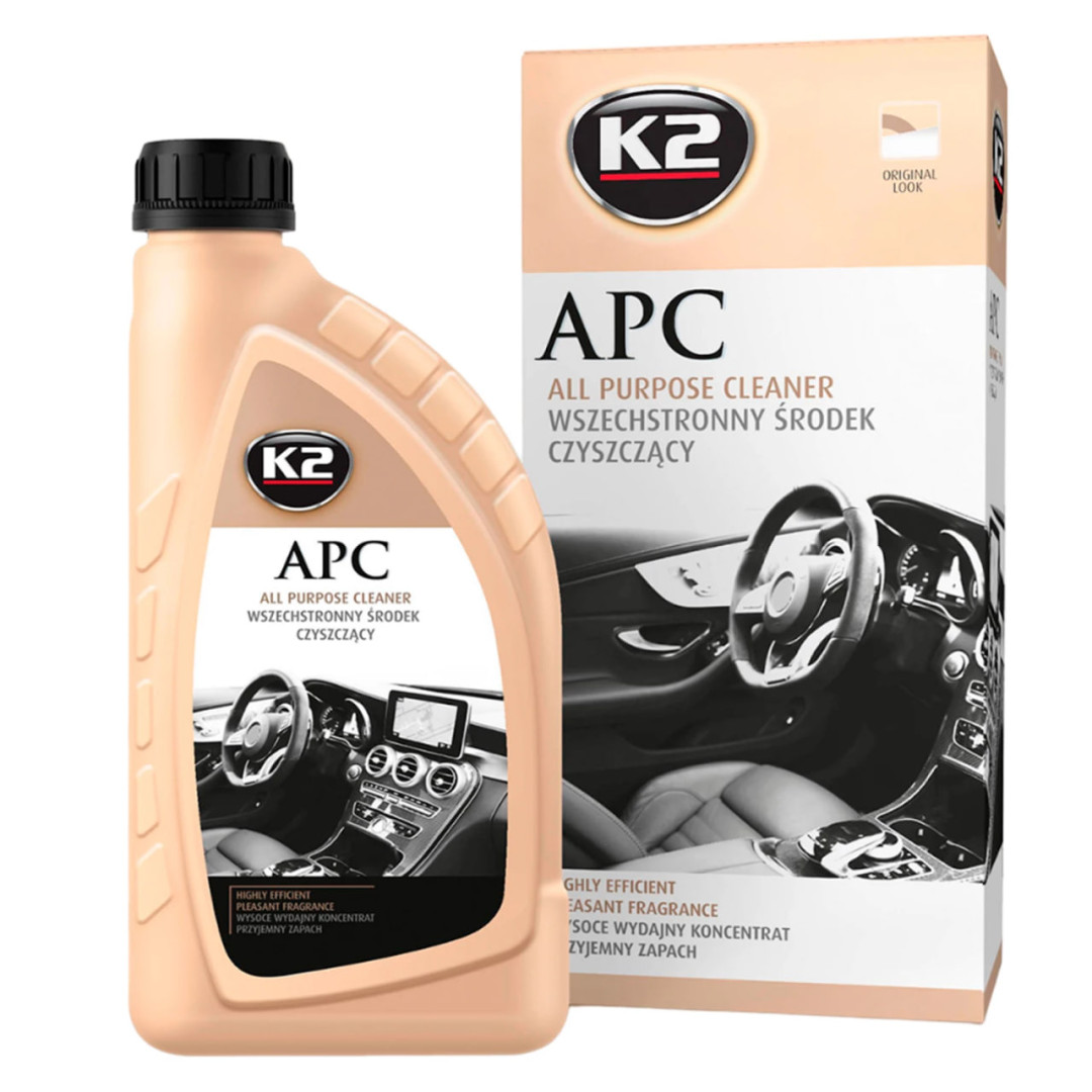 K2 APC - универсальное и малопенное средство для очистки всех поверхностей внутри и снаружи автомобиля. Уровень его прочности зависит от степени разведения. Также идеально подходит как средство для предварительной мойки наружных частей автомобиля. Для борьбы с грязью на пластиковых и виниловых элементах, кузове, шинах и дисках. Идеально подходит для стирки тканевой обивки. Проникает, действует быстро и эффективно. Не оставляет следов, в том числе в виде белого налета.