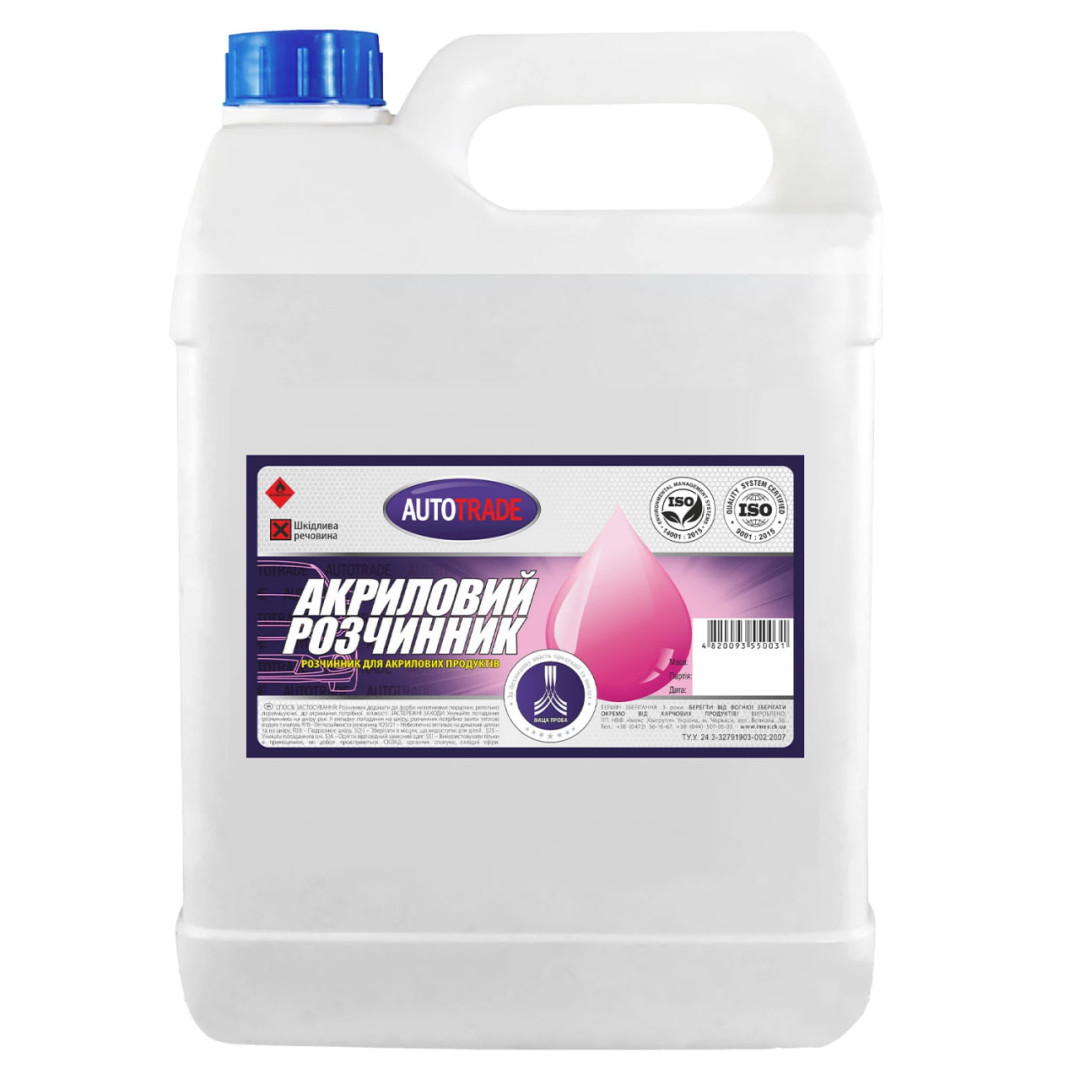Акриловый растворитель Autotrade предназначен для разбавления красок, эмалей, грунтовок и шпаклевок, изготавливаемых на акриловой основе. Особенность данной продукции следующее — в состав не входят прекурсоры.