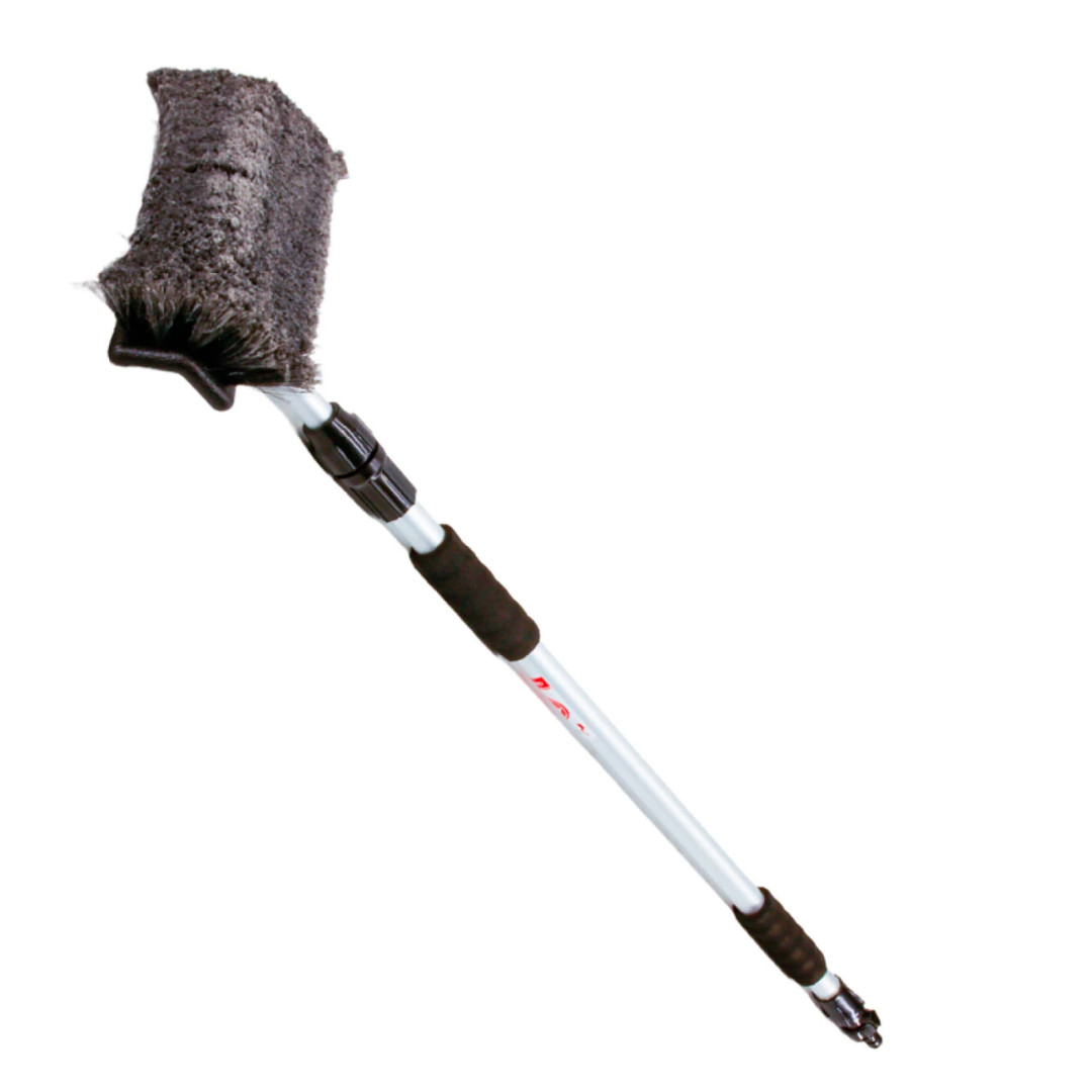Щётка для мойки кузова с алюминиевой телескопической ручкой и клапаном для подключения воды. Густая мягкая щетина эффективно удаляет большинство дорожных загрязнений как из плоскостей, так и мест стыков дверей и окон.