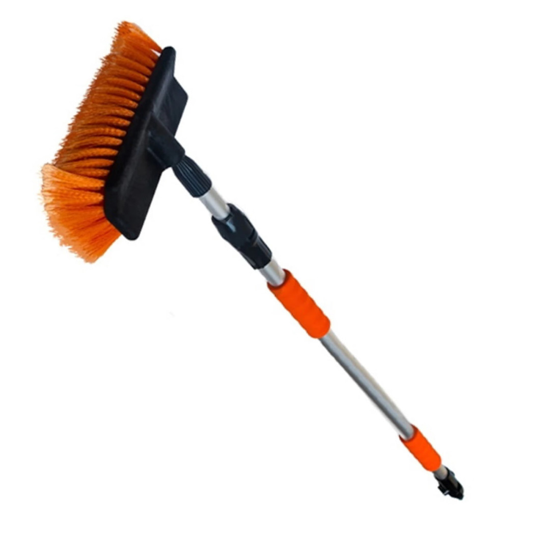 Щётка для мойки кузова с алюминиевой телескопической ручкой и клапаном для подключения воды. Густая мягкая щетина эффективно удаляет большинство дорожных загрязнений как из плоскостей, так и мест стыков дверей и окон.