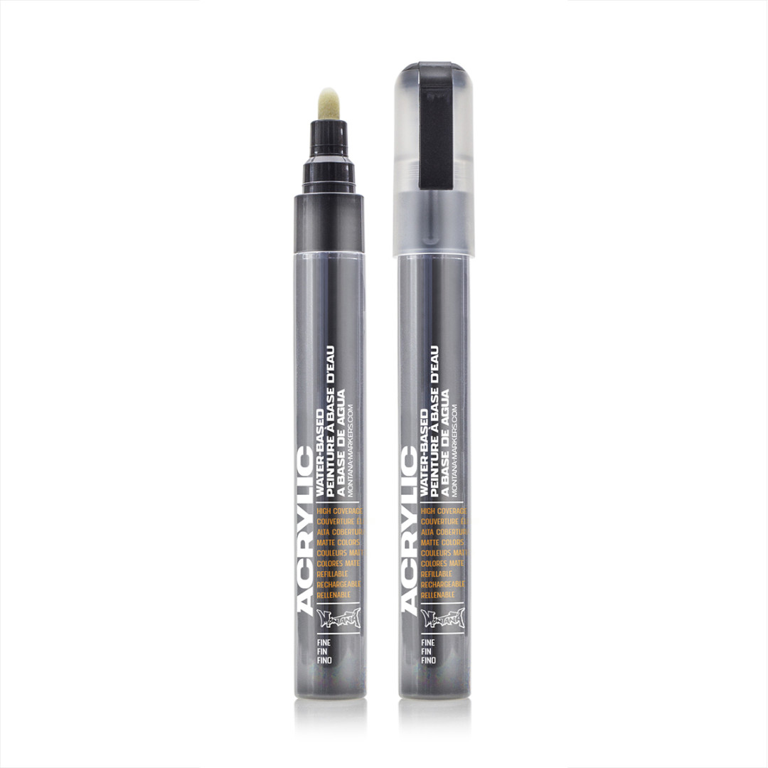 Маркер Montana Acrylic – маркер с акриловой краской на водной основе с круглым пером 2 мм. Применяется на жестких (металл, пластик, бетон, стекло) и поглощающих (холст, бумага, ткань, дерево) поверхностях. Прозрачные корпуса маркеров позволяют легко оценить остаточное содержимое маркера. Наконечники для замены доступны по отдельности. Для внутренних работ. Водное основание не токсично и не имеет запаха. Заправлен краской Montana Acrylic Paint. Акриловые краски разных цветов можно смешивать между собой внутри маркера.