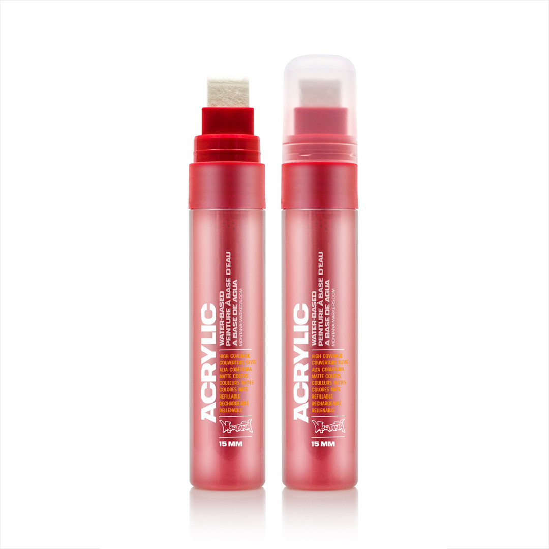 Маркер Montana Acrylic – маркер с акриловой краской на водной основе с прямоугольным пером 15 мм. Применяется на жестких (металл, пластик, бетон, стекло) и поглощающих (холст, бумага, ткань, дерево) поверхностях. Прозрачные корпуса маркеров позволяют легко оценить остаточное содержимое маркера. Наконечники для замены доступны по отдельности. Для внутренних работ. Водное основание не токсично и не имеет запаха. Заправлен краской Montana Acrylic Paint. Акриловые краски разных цветов можно смешивать между собой внутри маркера.