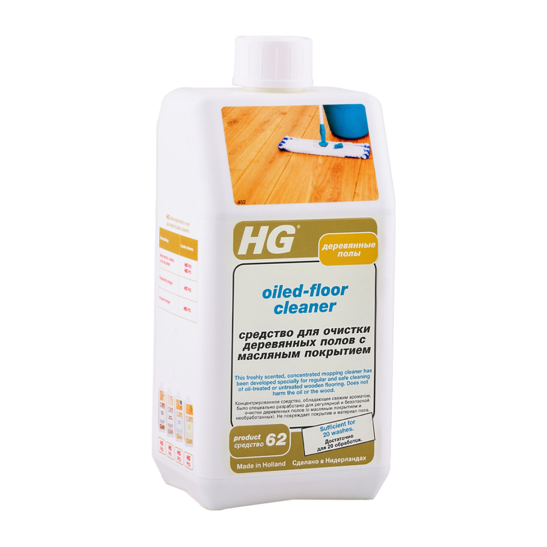 Средство для мытья деревянных полов с масляным покрытием HG – для изделий из натурального дерева и смазанного маслом дерева. Концентрированное средство со свежим ароматом предназначено для безопасного ухода за деревянными полами как смазанных маслом, так и необработанных. Средство не повреждает покрытие и структуру древесины. Подходит для чистки пробковых полов, покрытых маслом.