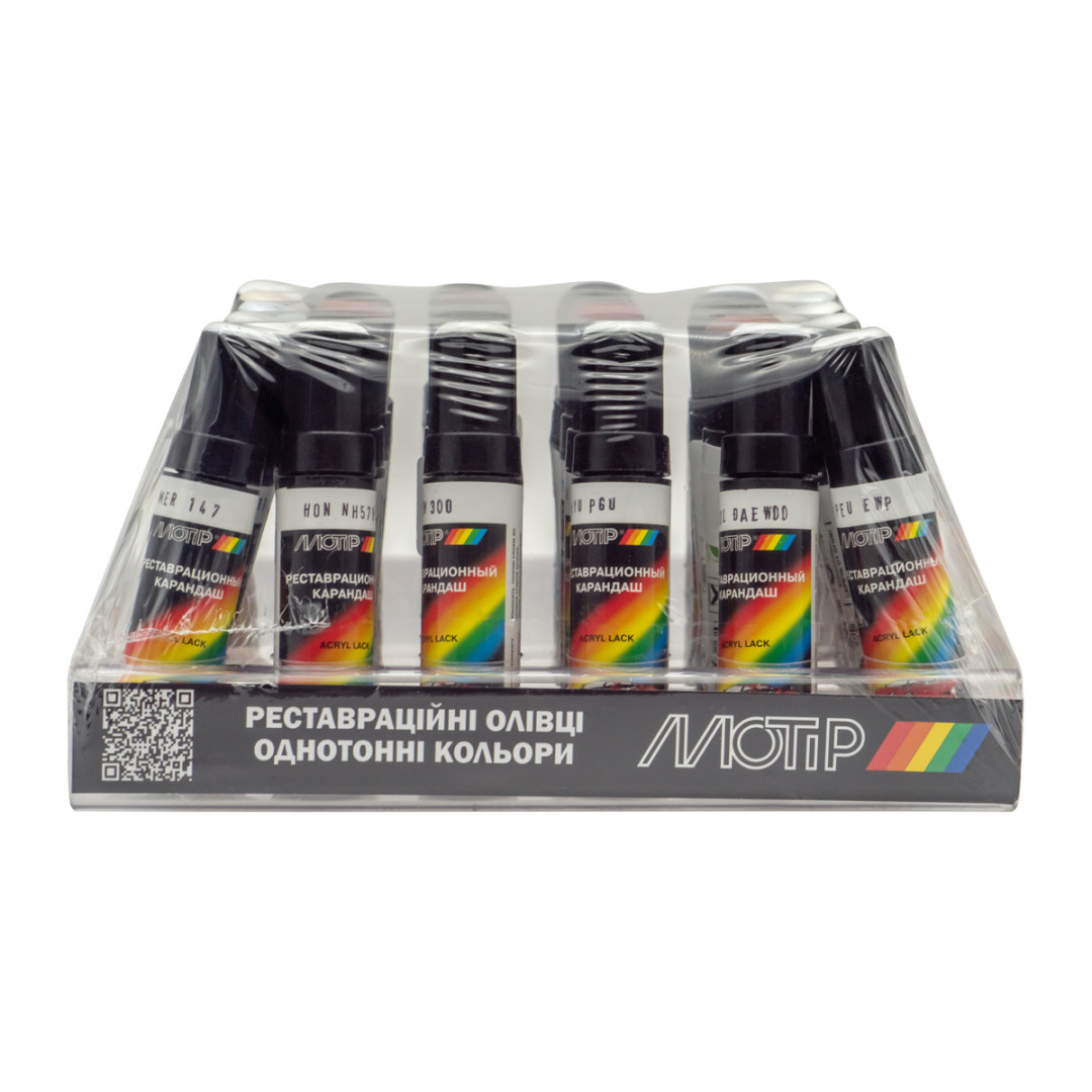 Карандаш MOTIP – высококачественная акриловая смола, которая быстро полимеризуется, сохнет «на отлип» в течение 5-10 минут при t 15 – 25°С. Карандаши для подкраски MOTIP – это специальное средство для быстрого устранения глубоких царапин и восстановления лакокрасочного покрытия на автомобиле.